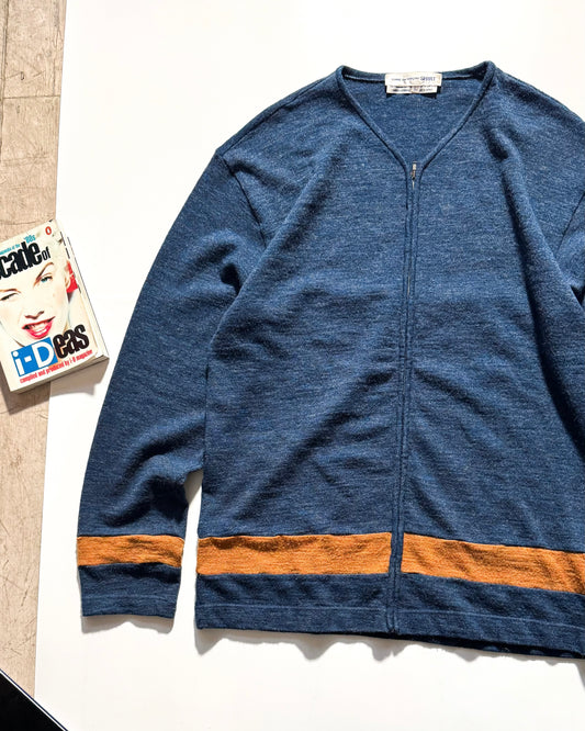 90s Heather Blue / Orange Stripe Knit Zip Up Cardigan (~L~)