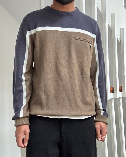 Olive / Navy Striped Two Tone Virgin Wool / Cashmere Knit Jumper (~M~)