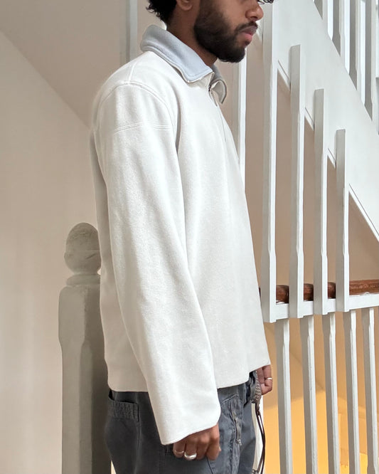 White / Grey Contrast Collar Quarter Zip Fleece Jumper (M~L)