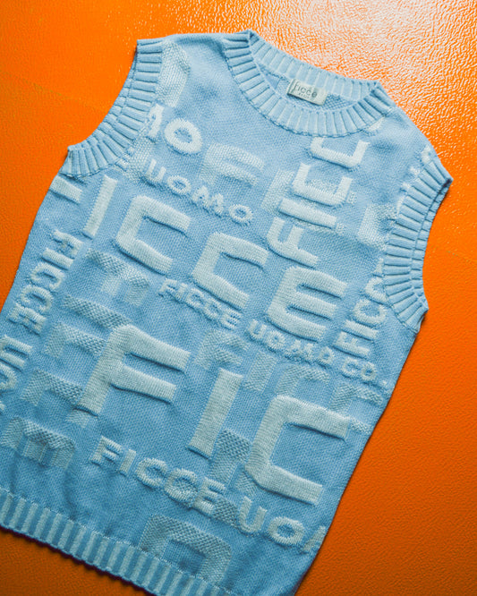 Intarsia Monogram Baby Blue Knit Vest (S~M)