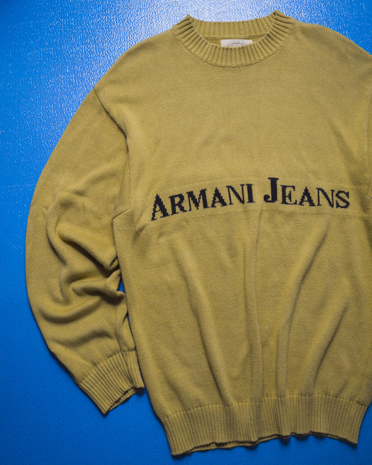 90s Spell-out Muted Yellow Knit Jumper (~L~)