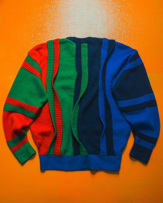 80s Red Green Blue 3-D Layered Strip Knit Jumper (M~L)