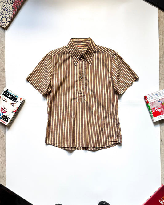 2000s Vertical Striped Brown / Yellow Quarter Button Up Shirt (~M~)