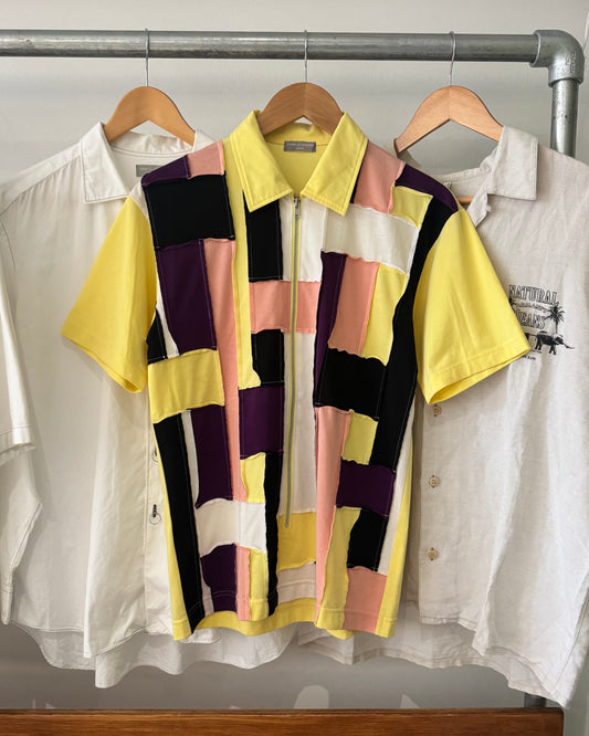 2001 Yellow Purple Pink Patchwork Polo Shirt / Top (~M~)