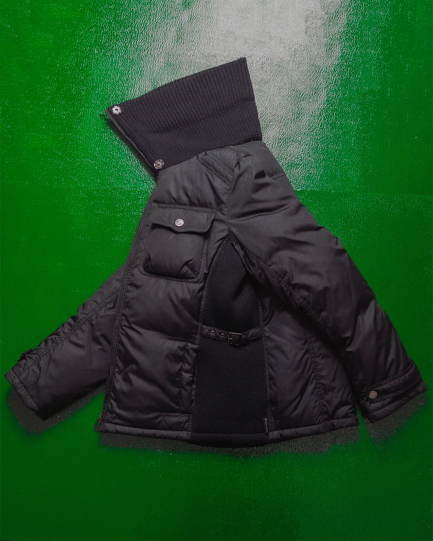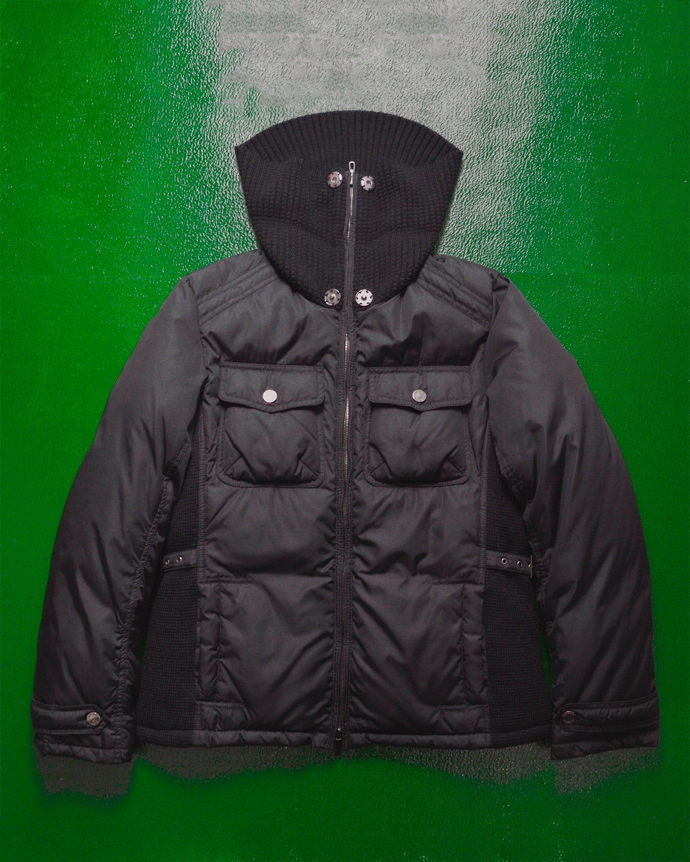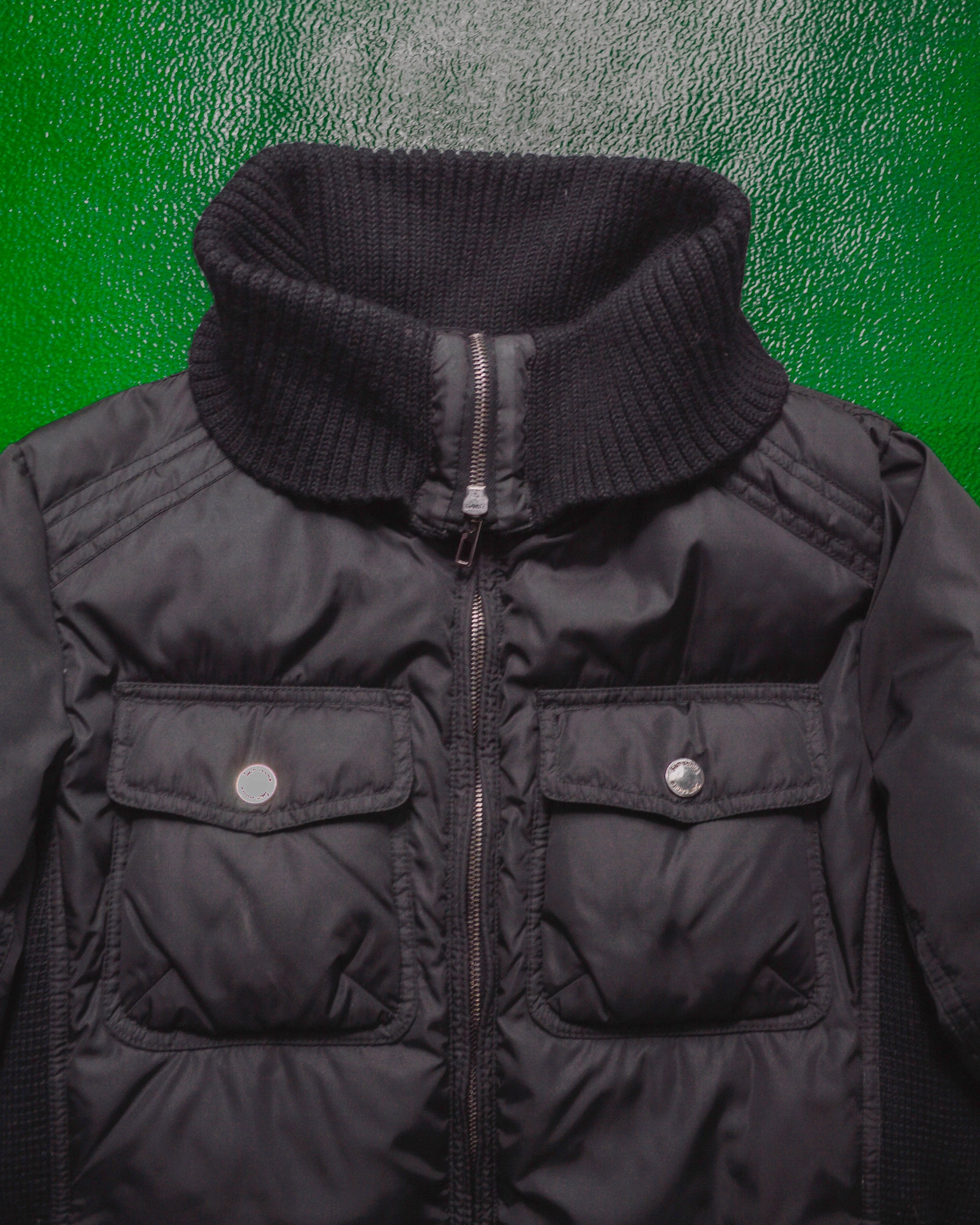 Black Label Women's Black High Knit Funnel Neck Down Jacket (46)