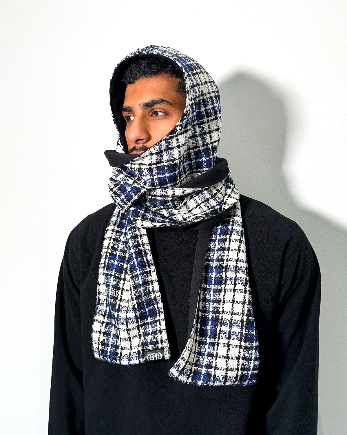 Reji Blue Plaid / Black Reversible Scood Harf / Hood Scarf (OS)