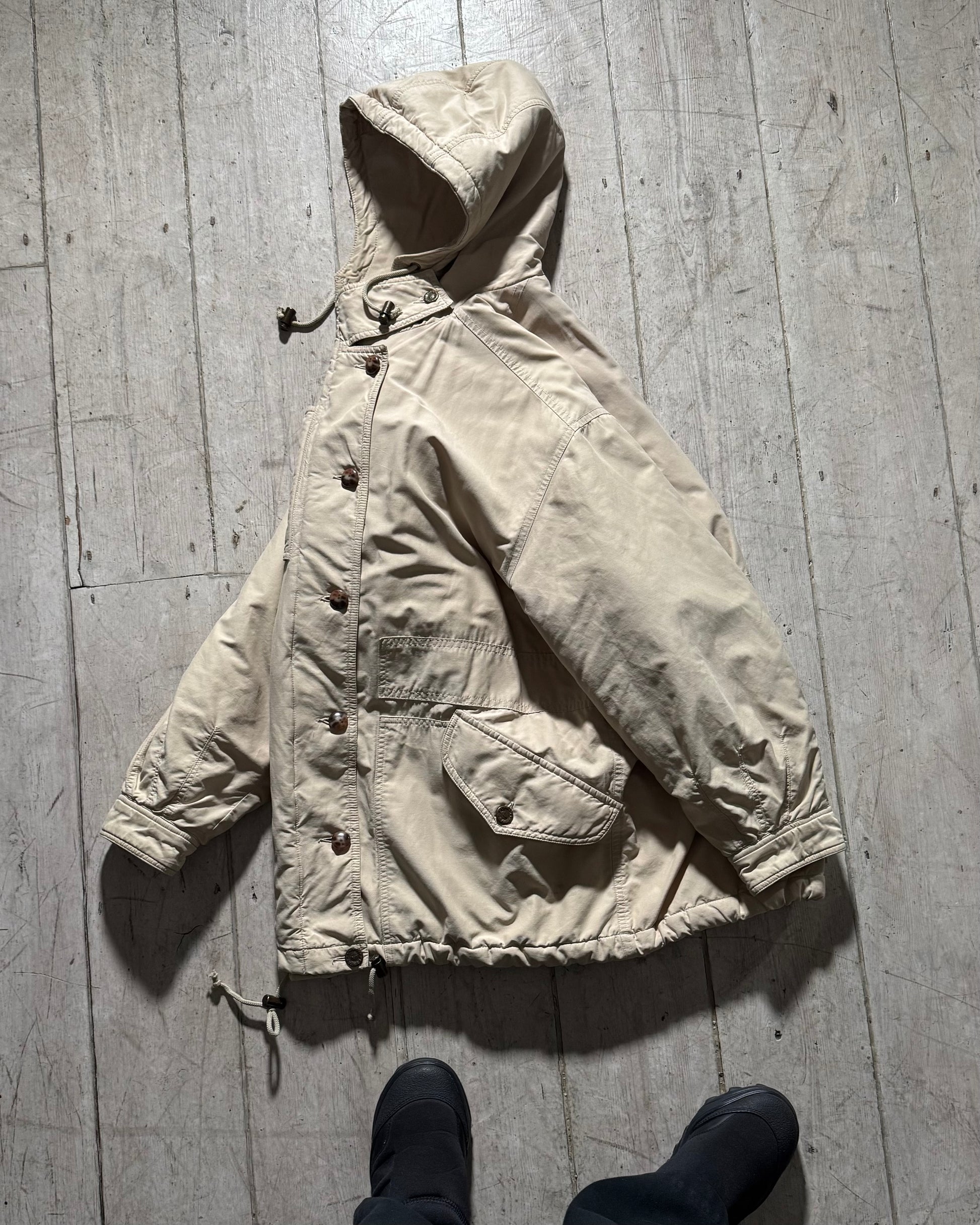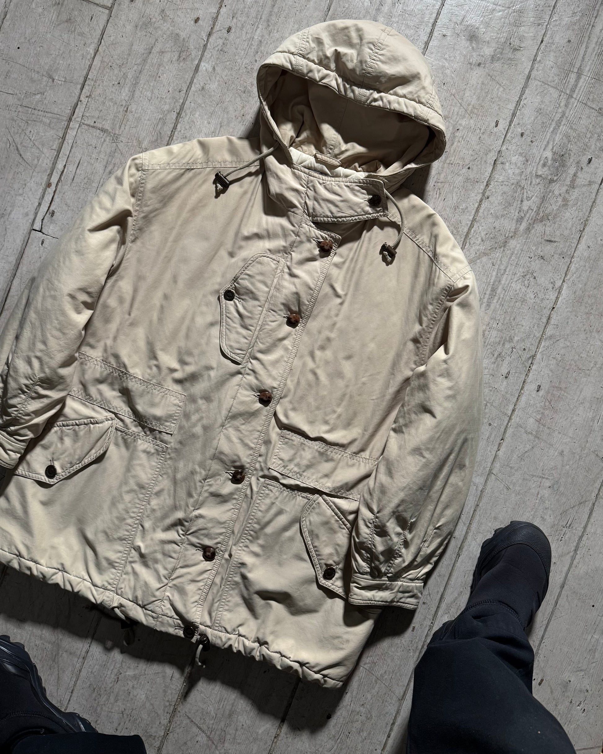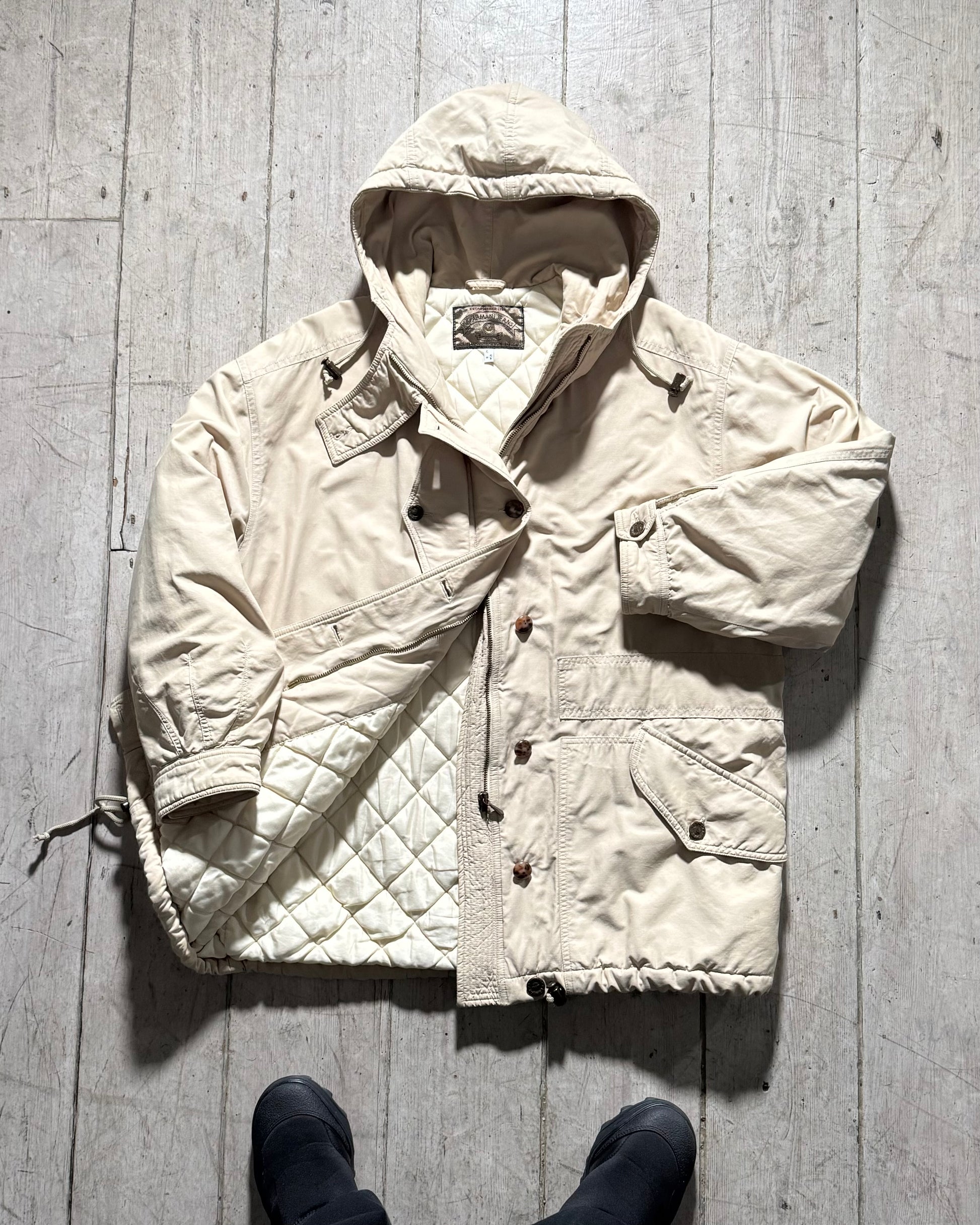 Armani Vintage 90s Beige Asymmetrical Quilted Beige Parka Jacket (~M~)