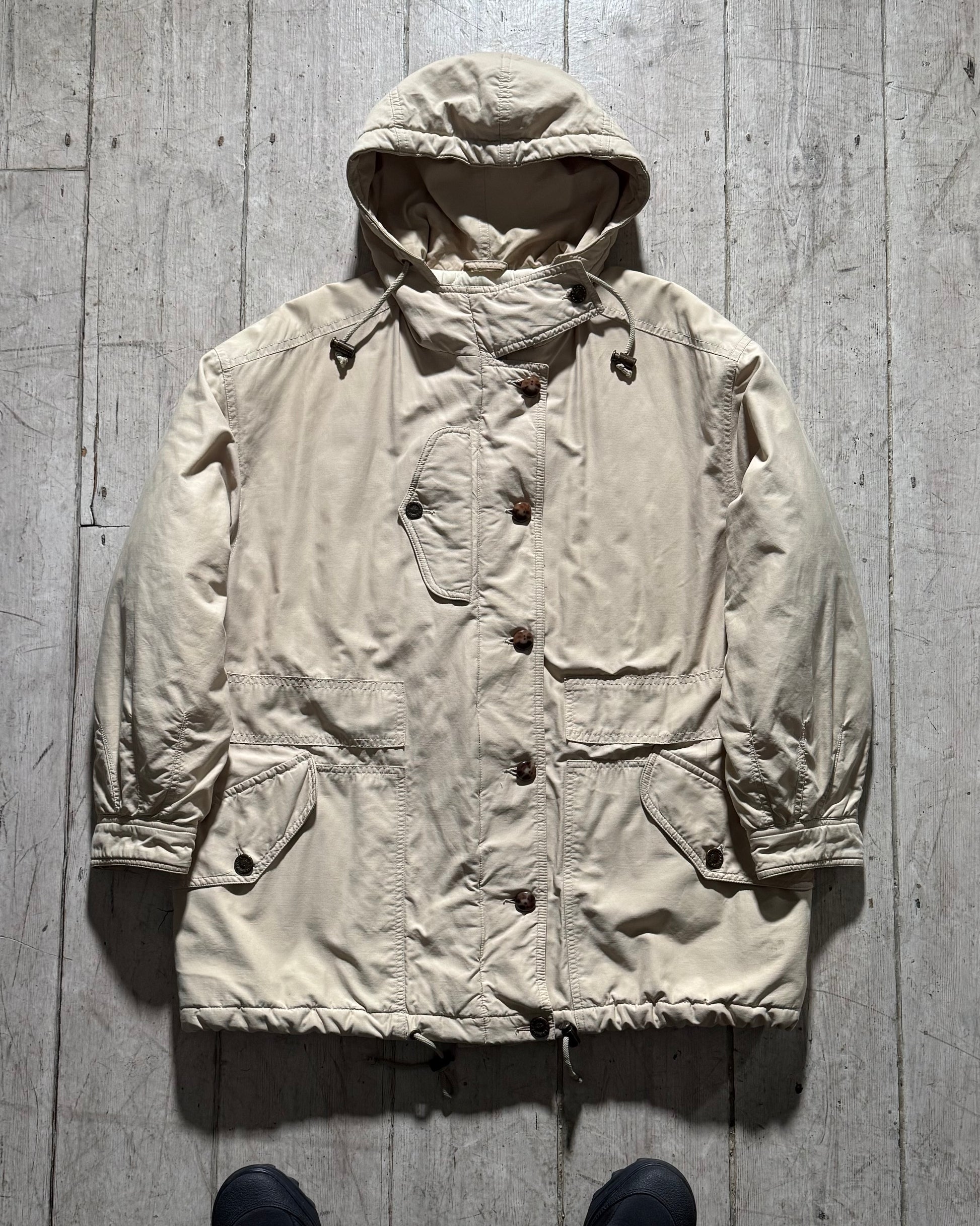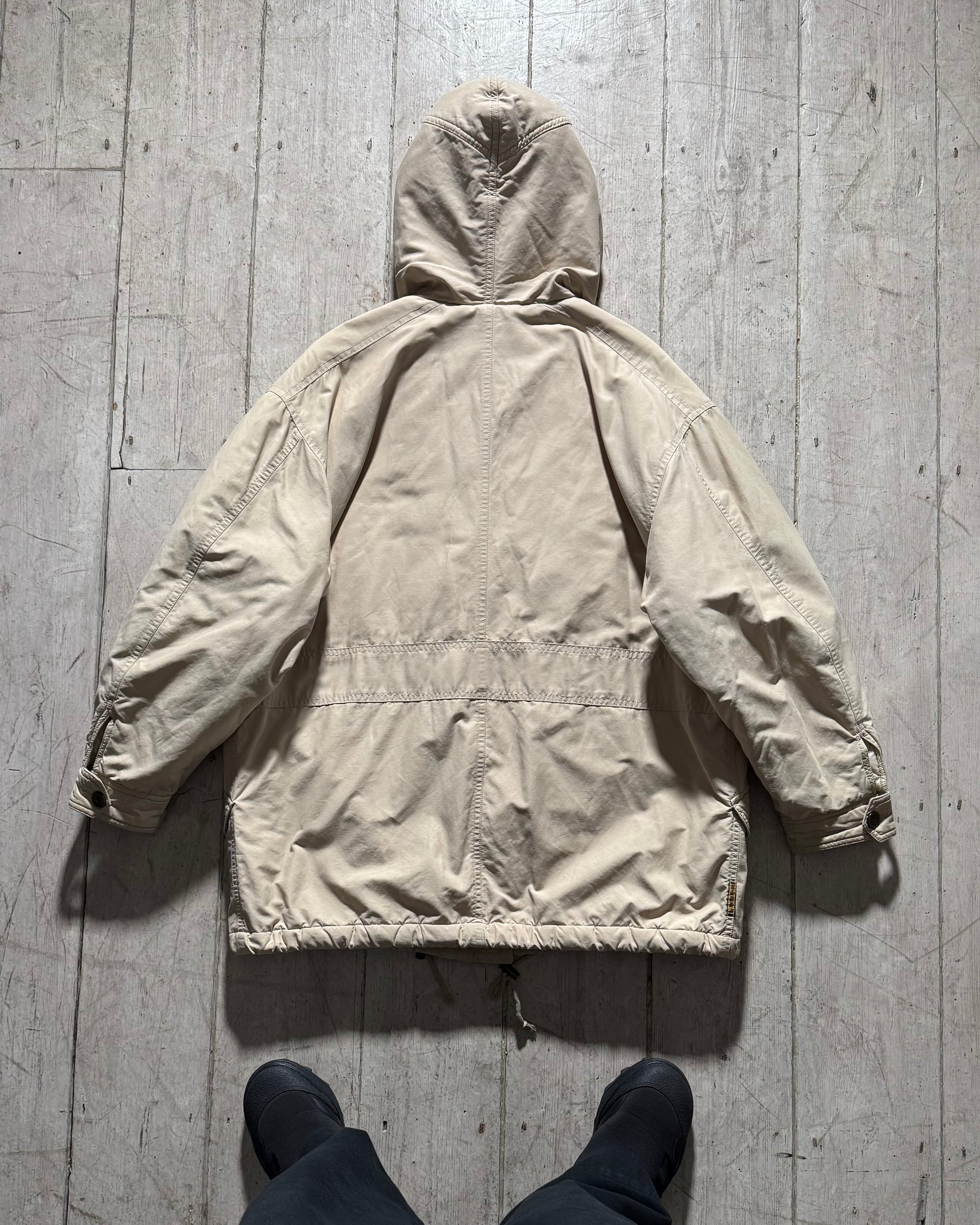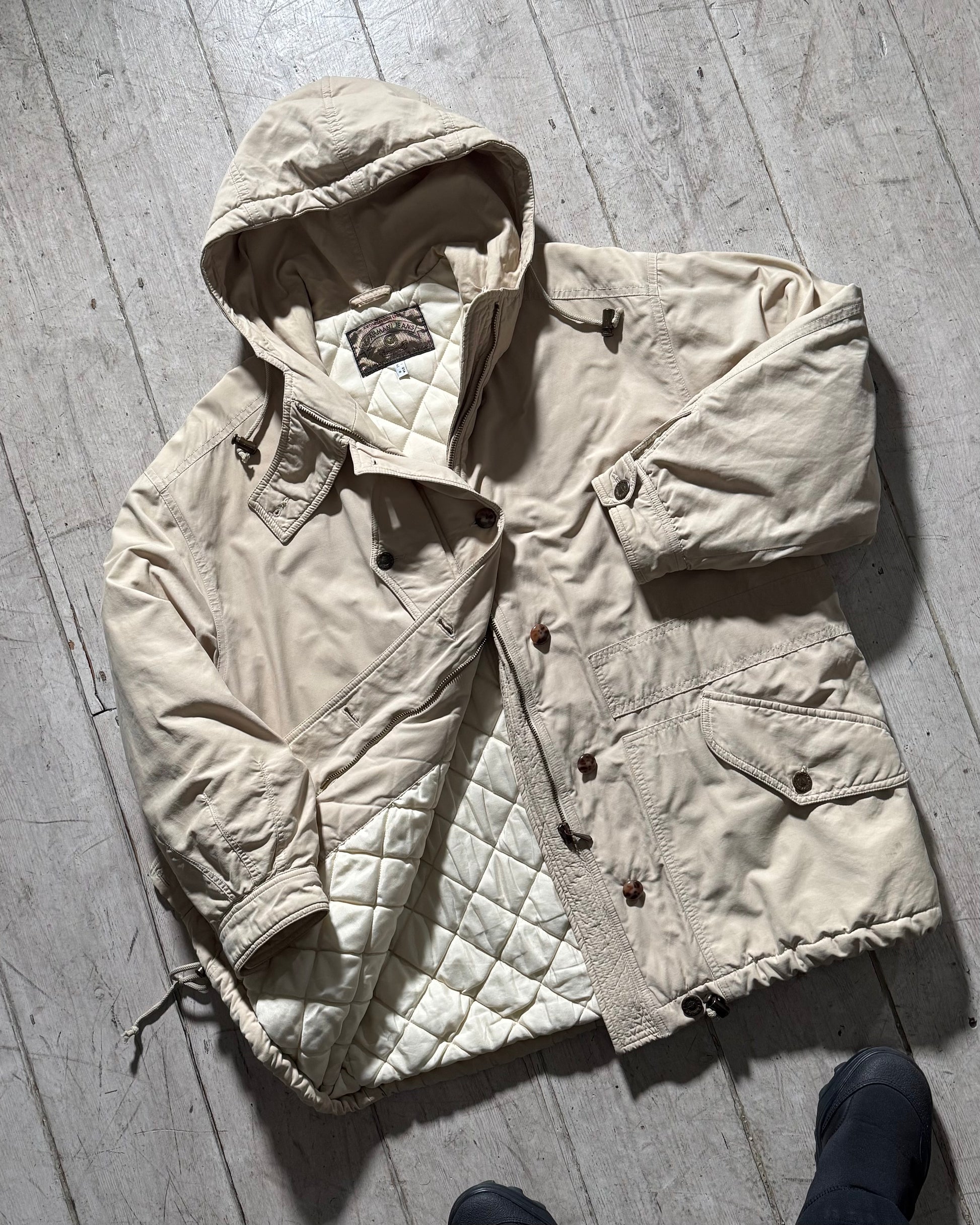 Armani Vintage 90s Beige Asymmetrical Quilted Beige Parka Jacket (~M~)