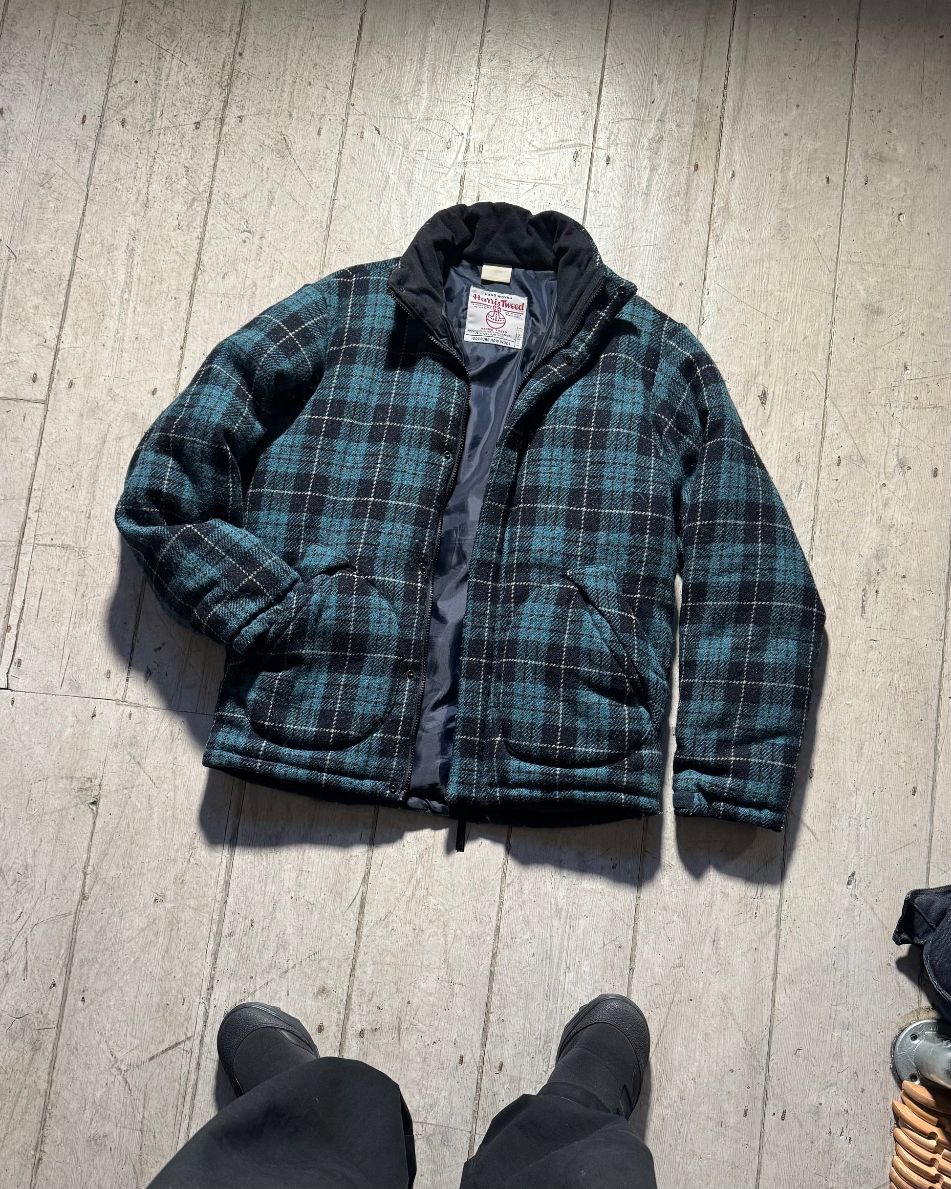 GOODENOUGH 90s Harris Tweed Wool Plaid Puffer Jacket (OS)