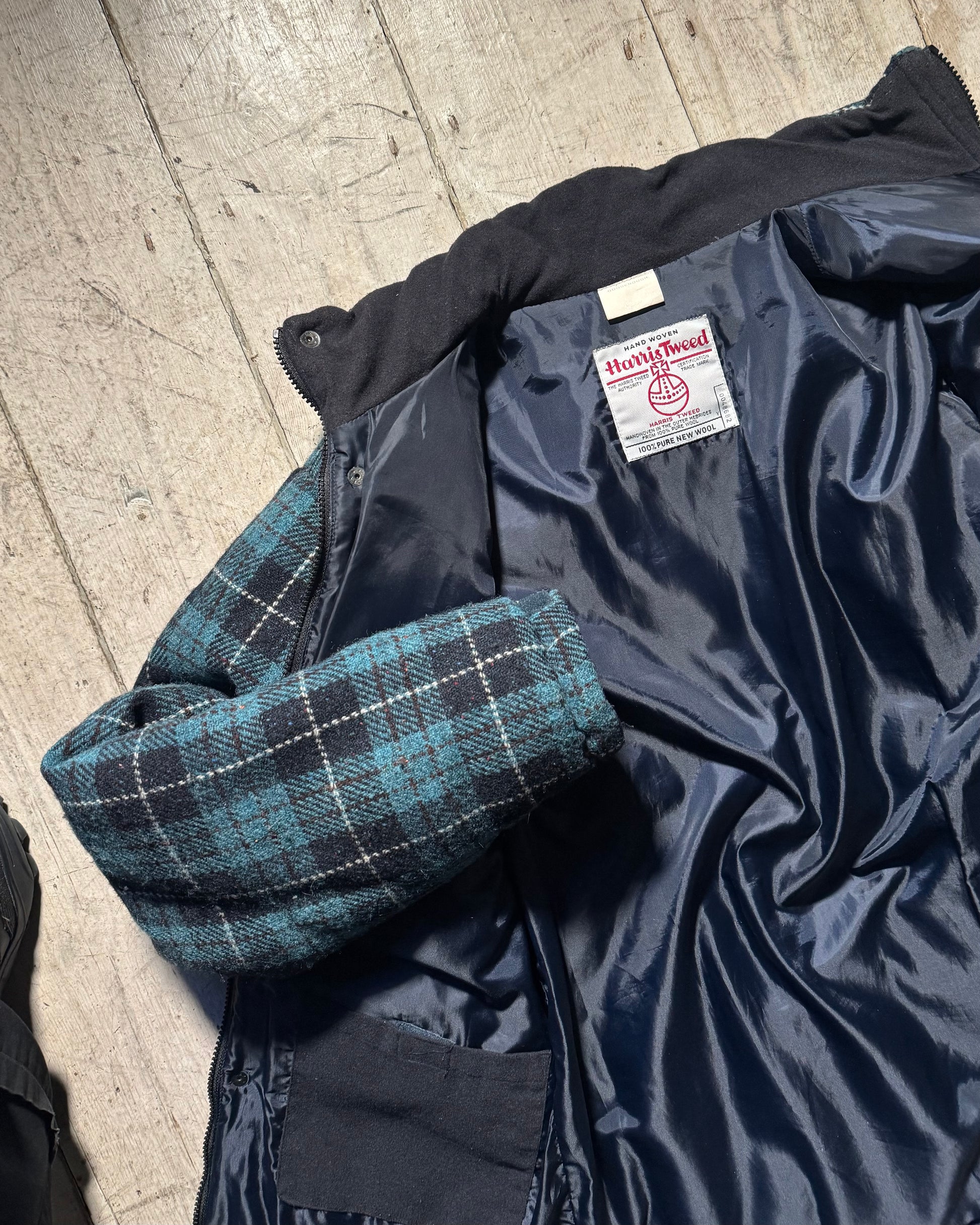 90s Harris Tweed Wool Plaid Puffer Jacket (OS)