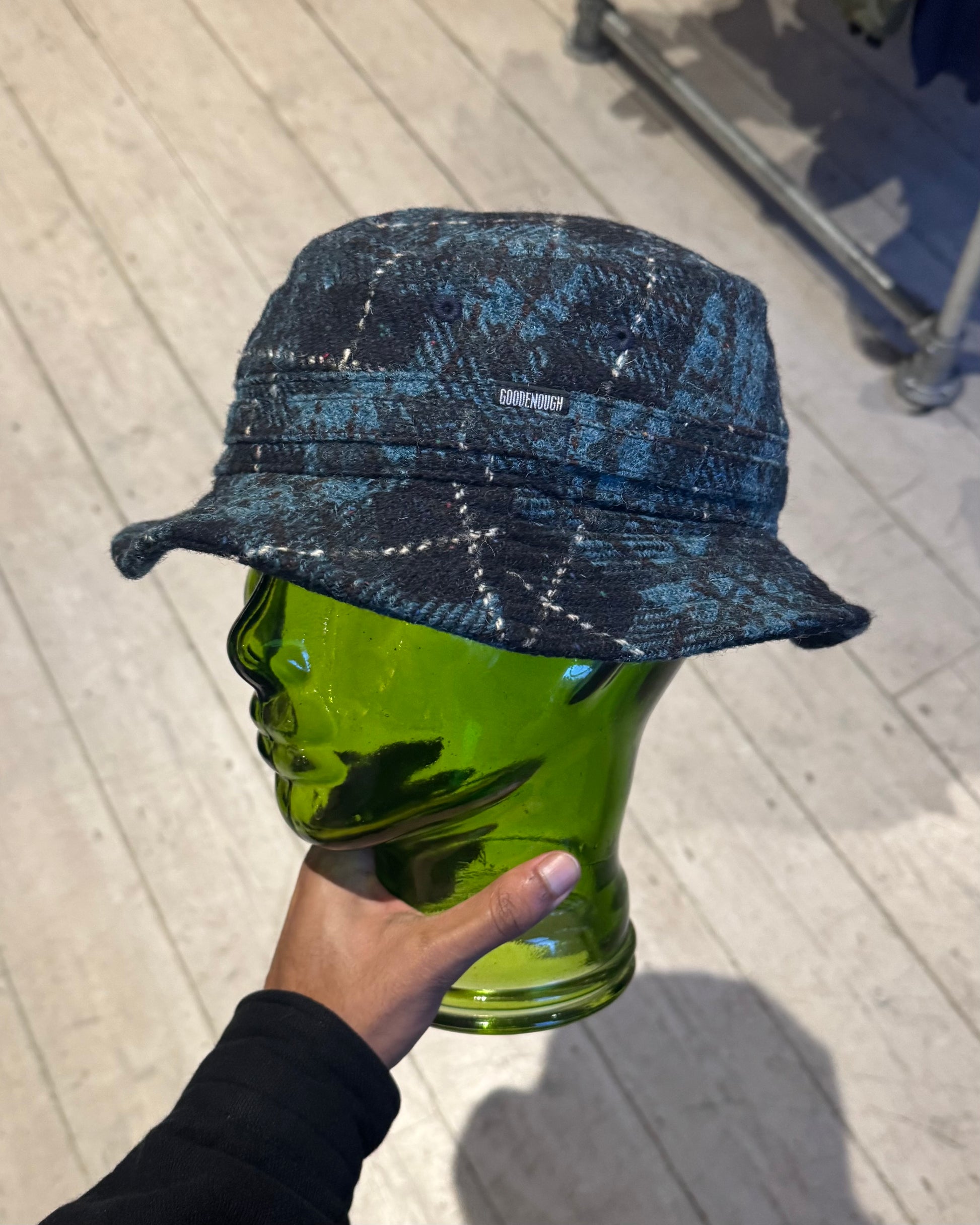 GOODENOUGH 90s Harris Tweed Wool Plaid Bucket Hat (OS)