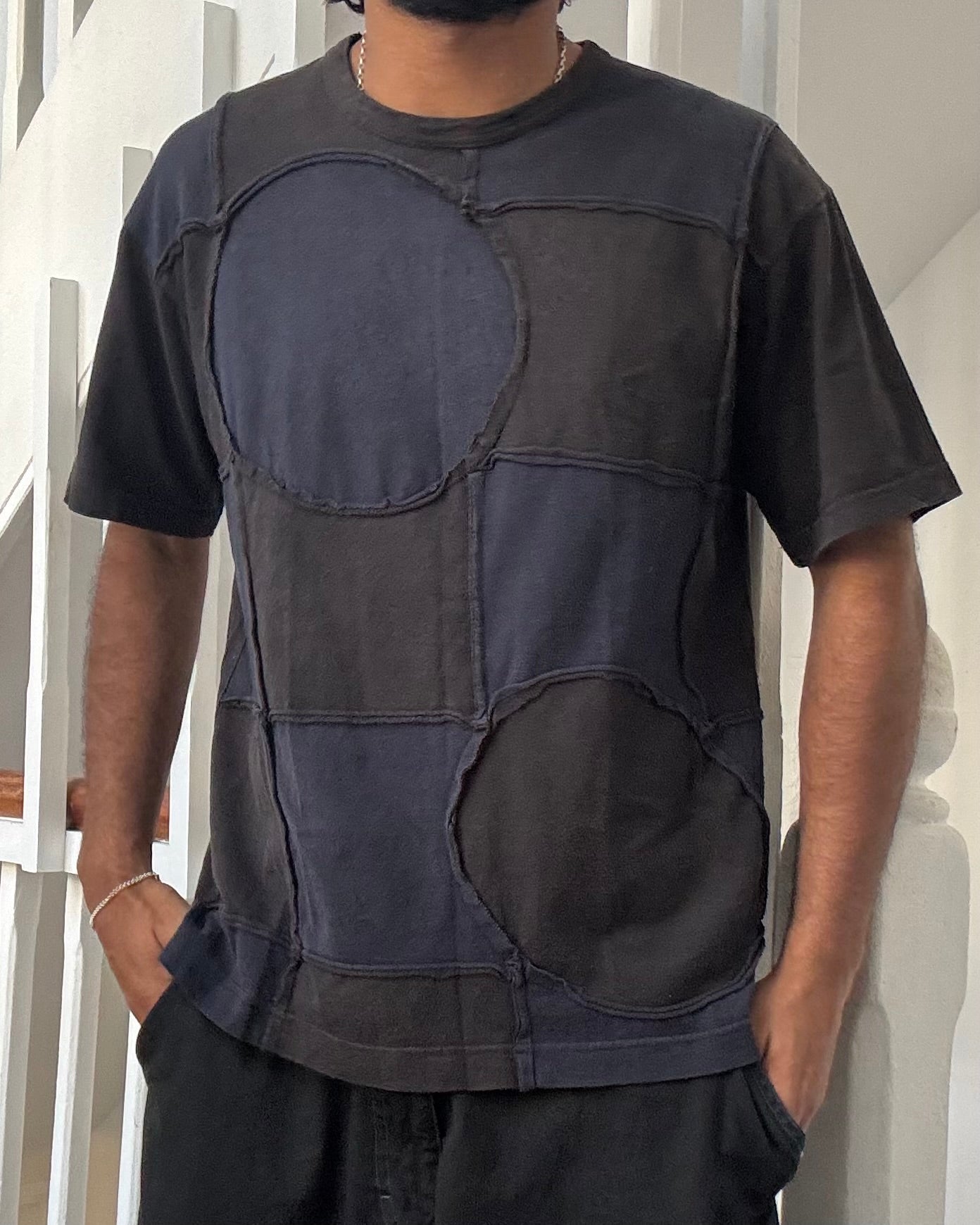 Early 2000s Washed Black / Navy Circle Patchwork Style Front Top / T-Shirt (M~L)