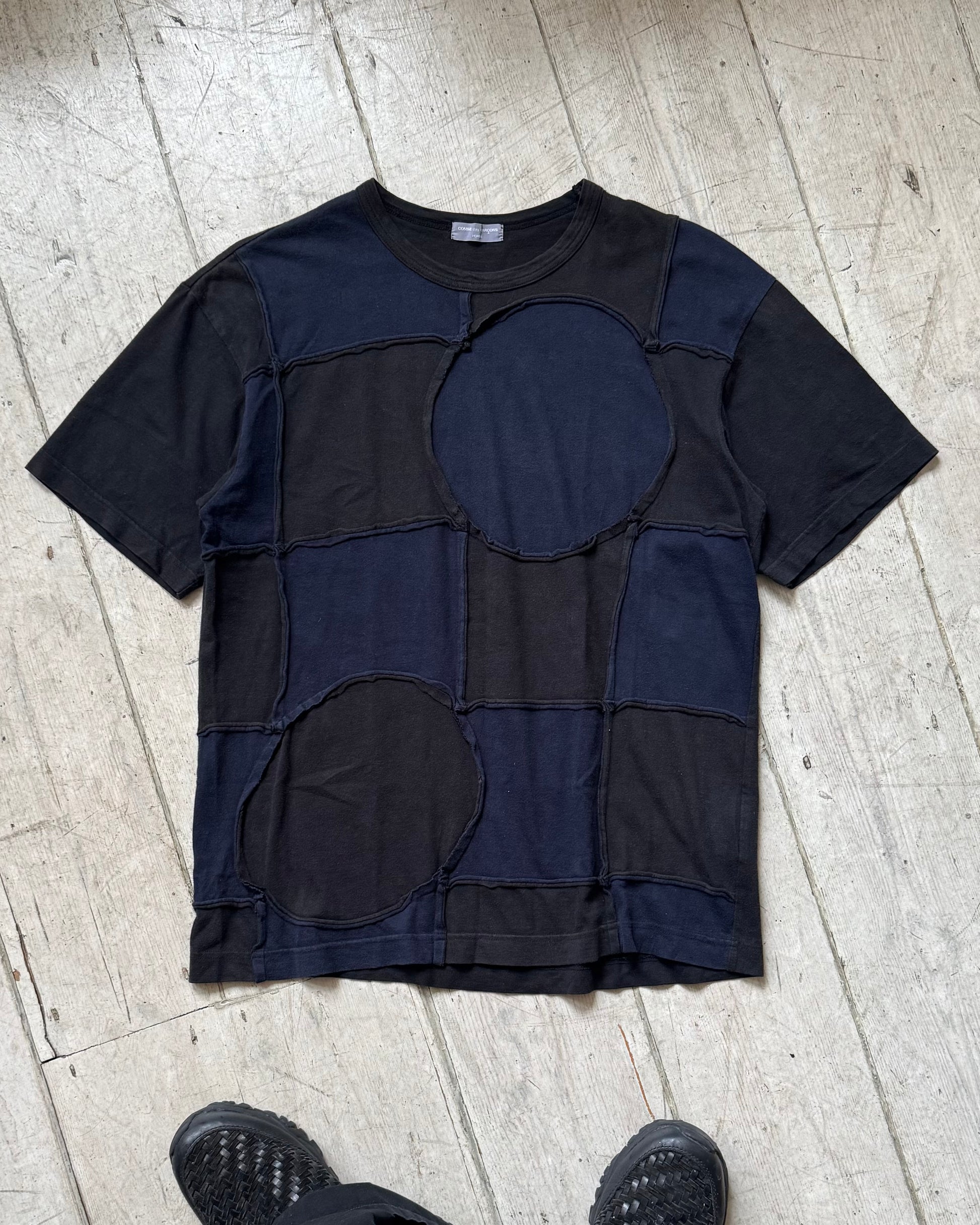 Comme Des Garçons / CdG Homme Vintage Early 2000s Washed Black / Navy Circle Patchwork Style Front Top / T-Shirt (~M~)