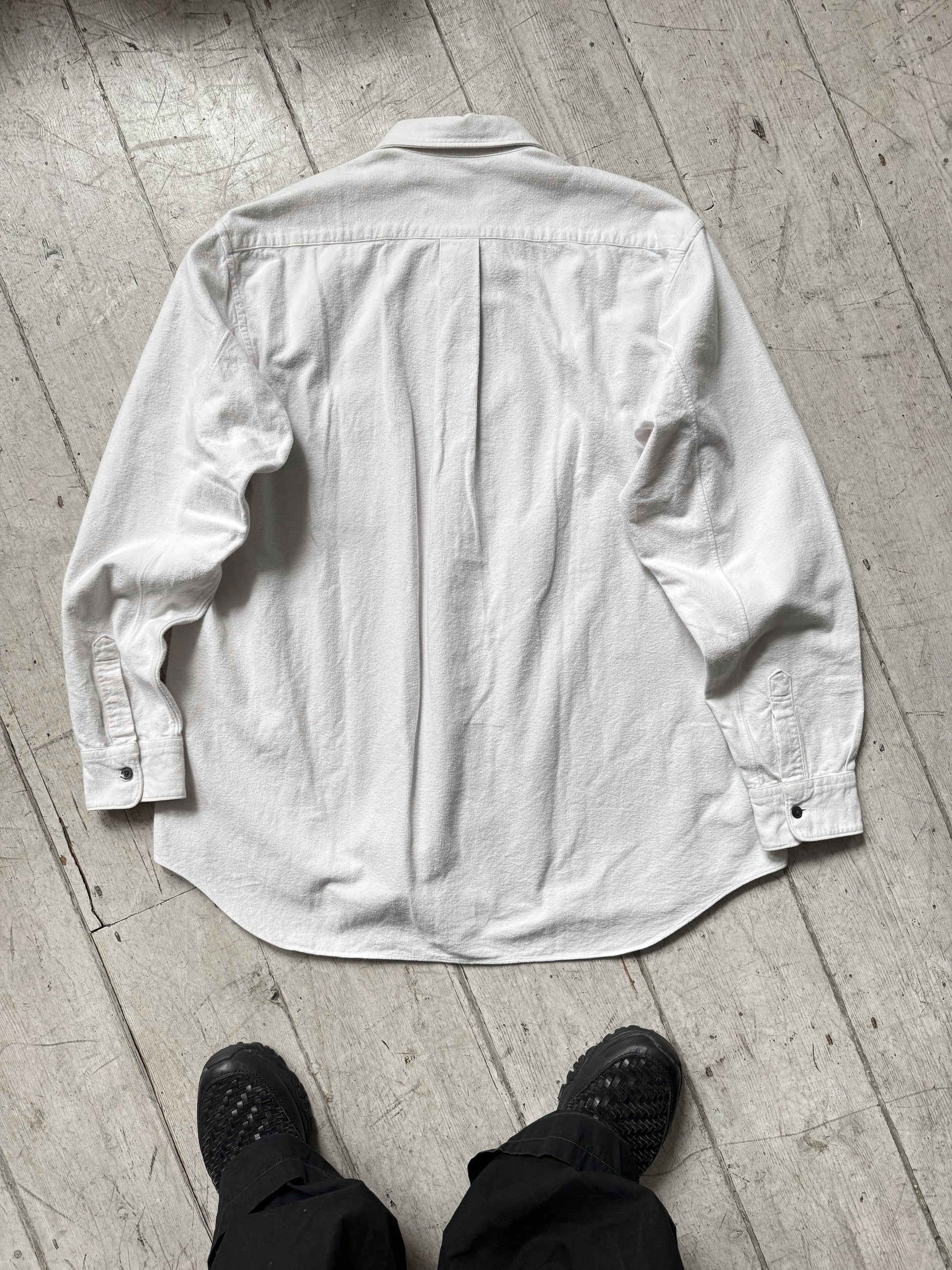 Comme des Garcons / CdG Shirt Vintage 90s Off Center Circle Patch Blue / White Shirt (~L~)