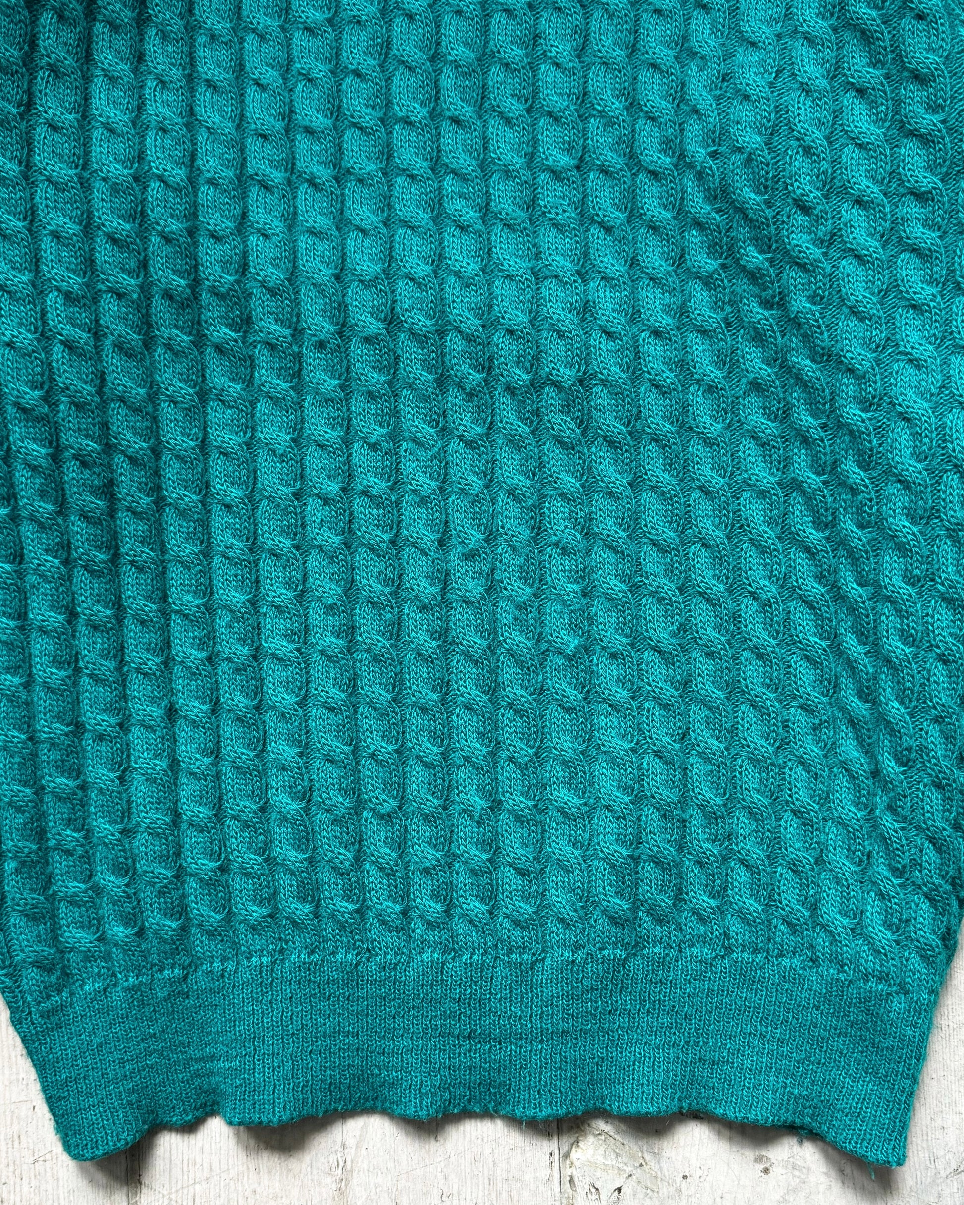 80s Vivid Teal Cable Knit Front Jumper (~M~)