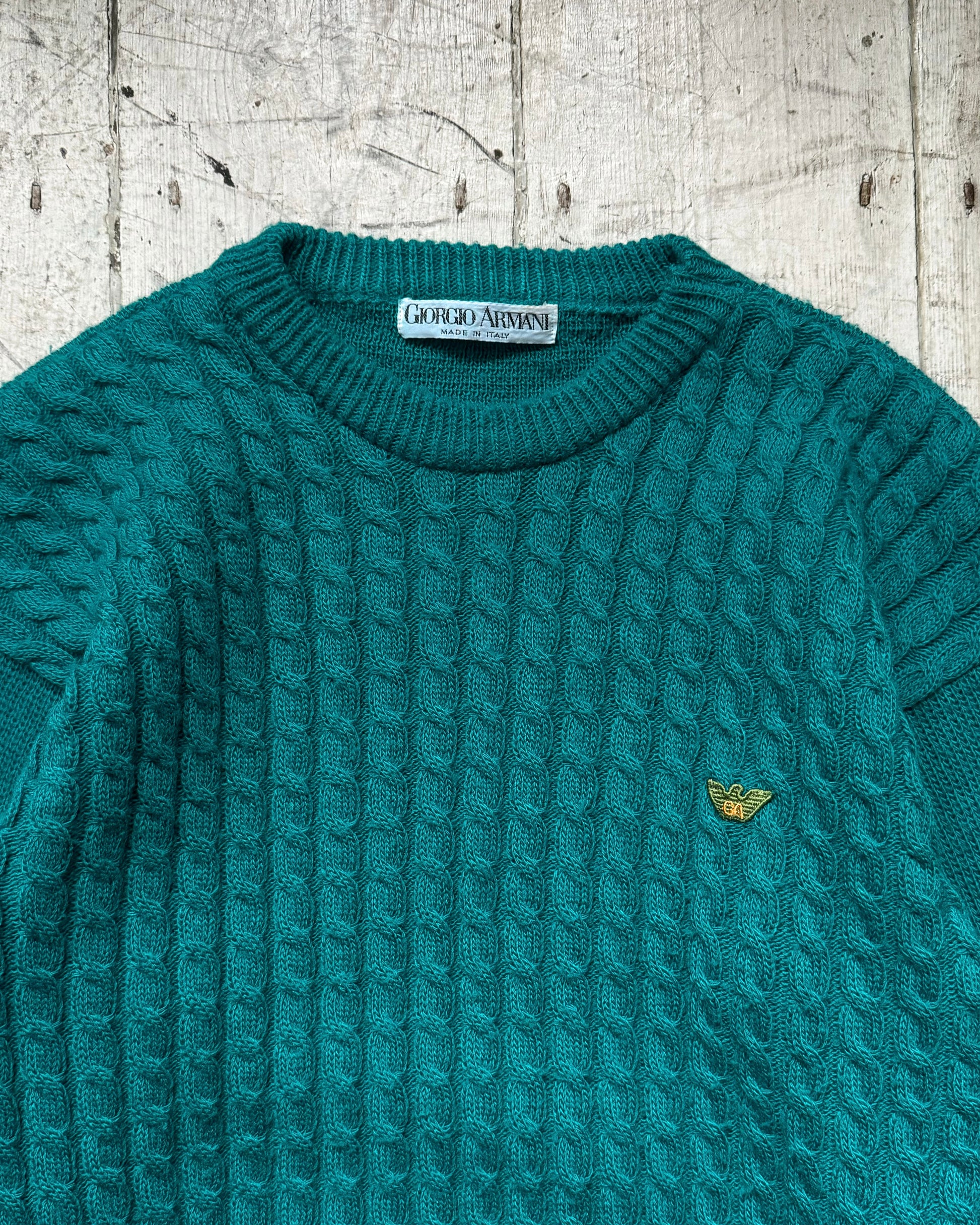 Giorgio Armani Vintage 80s Vivid Teal Cable Knit Front Jumper (~M~)