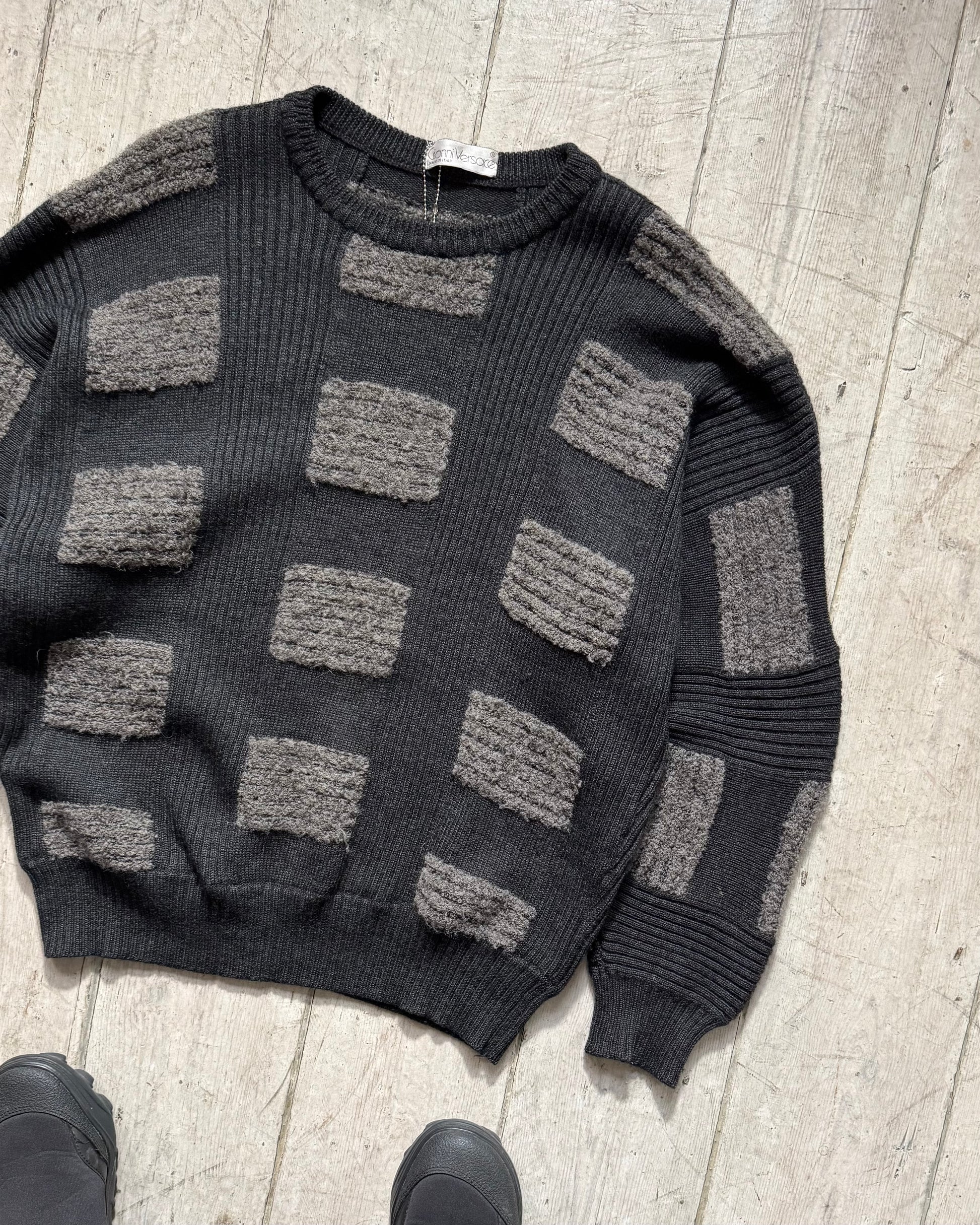 Gianni Versace Vintage 80s Grey Patch Pattern Knit Jumper (L~XL)