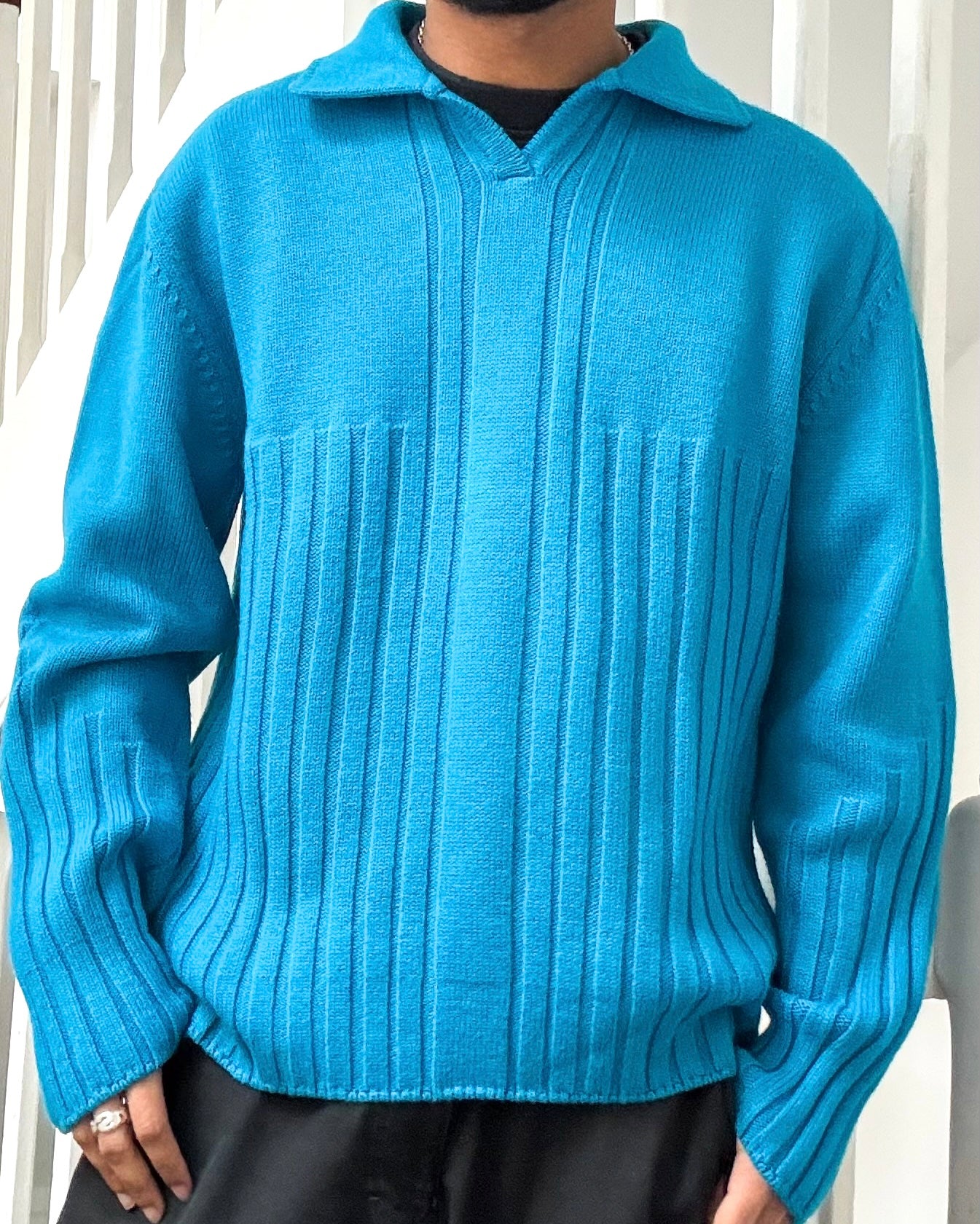 Early 2000s Vivid Blue Collared Chunky Ribbed Knit Jumper (~L~)