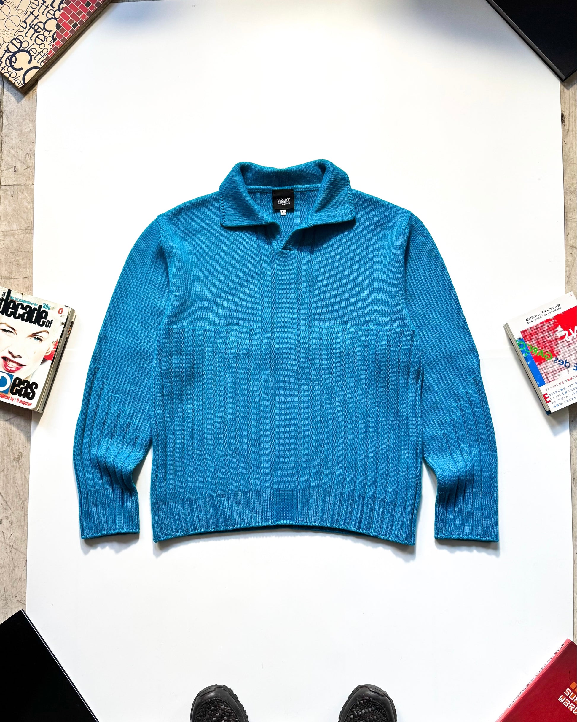 Versace Vintage Early 2000s Vivid Blue Collared Chunky Ribbed Knit Jumper (~L~)