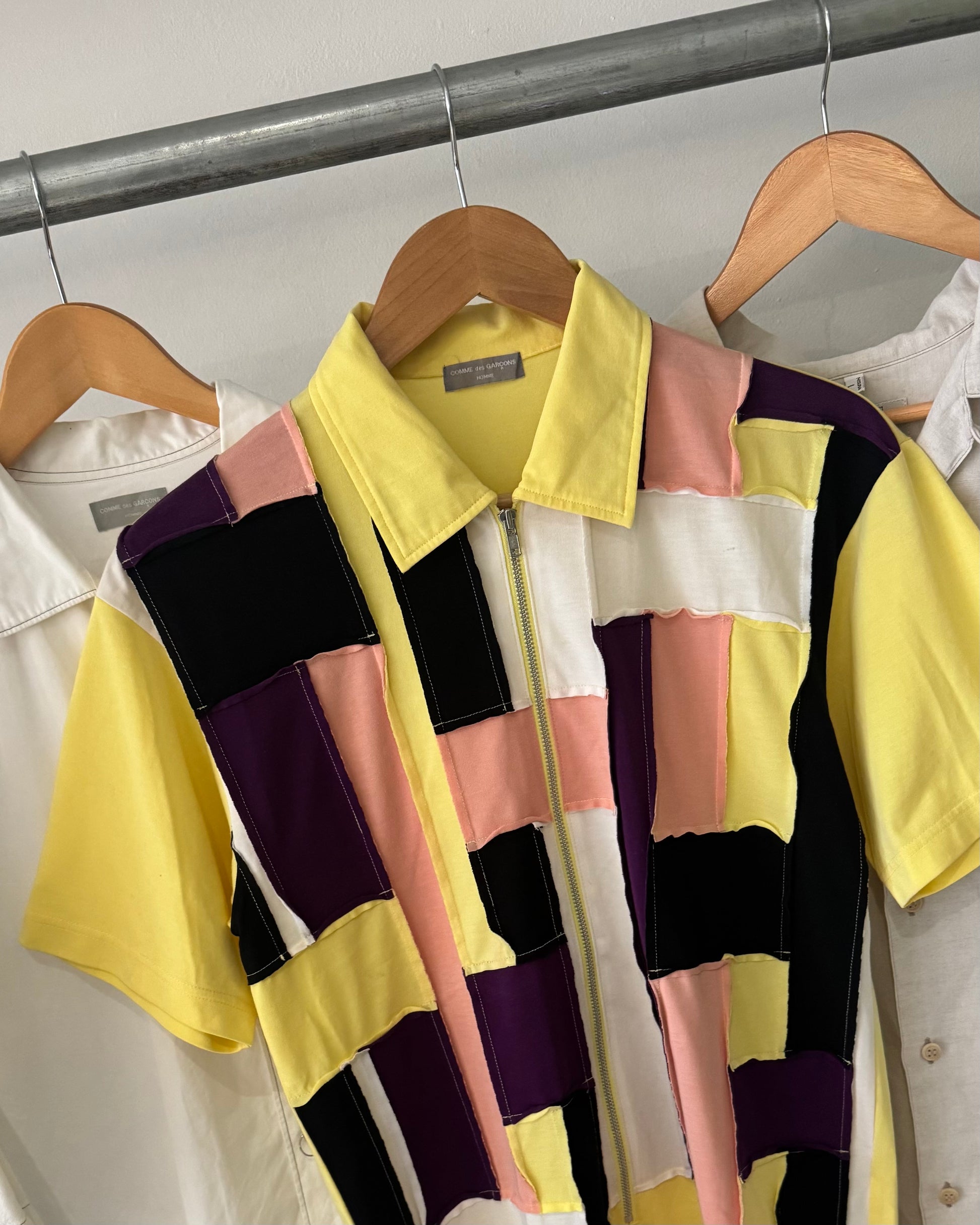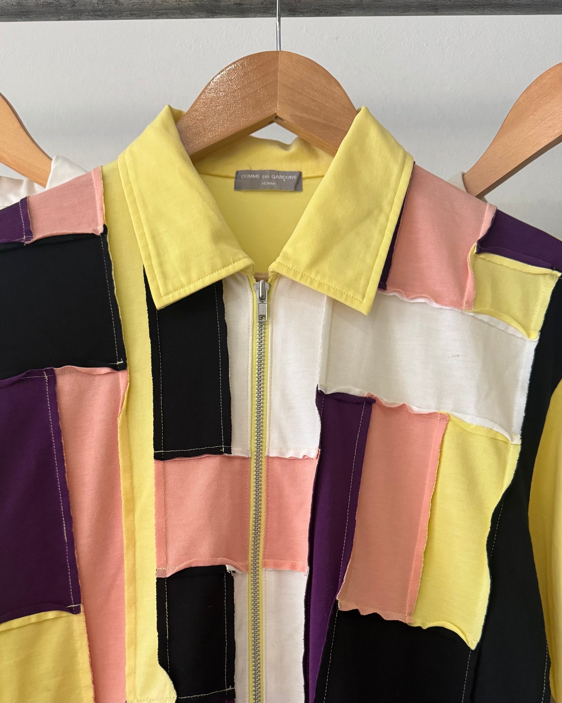 Comme des Garçons Homme Vintage 2001 Yellow Purple Pink Patchwork Polo Shirt / Top (~M~)