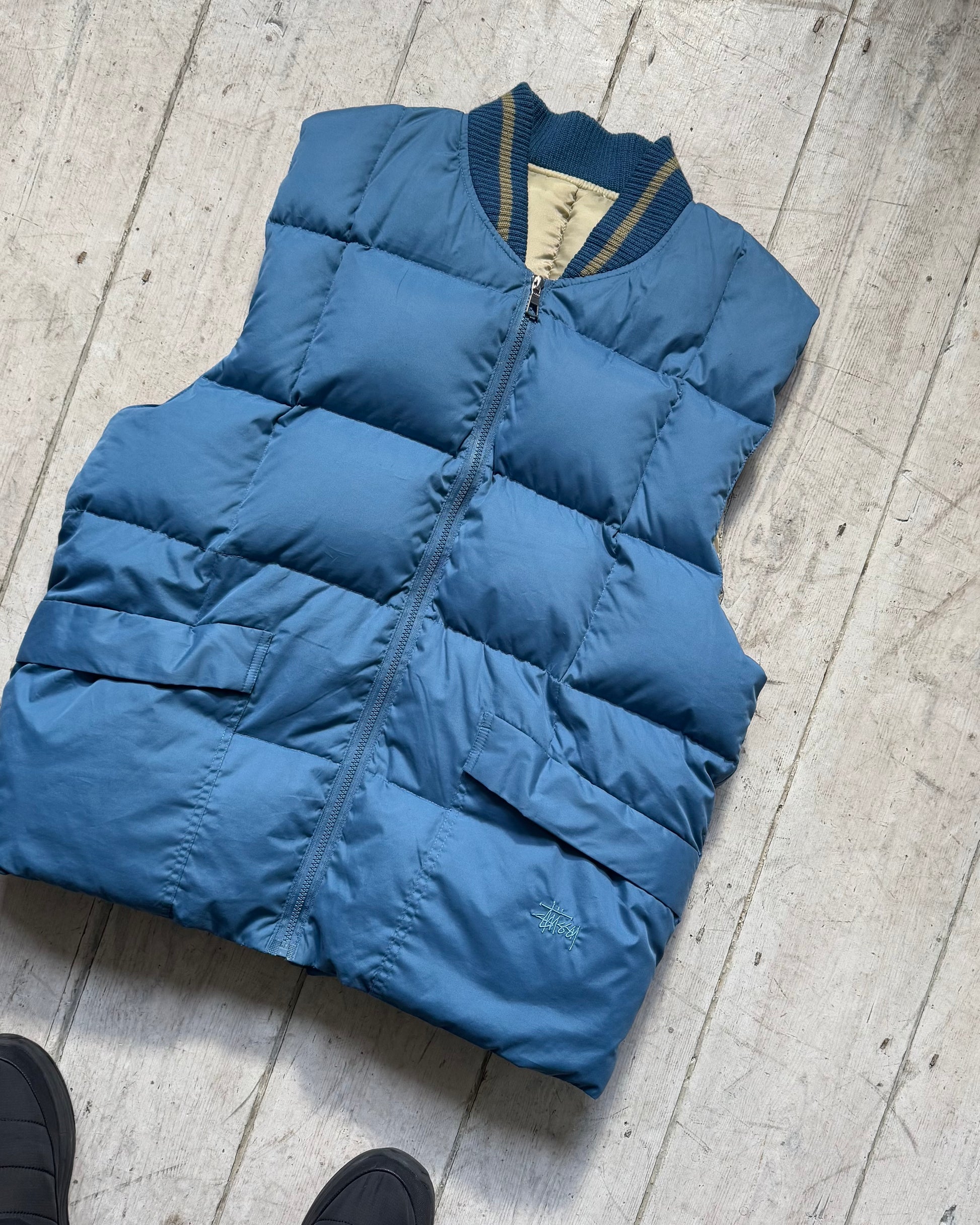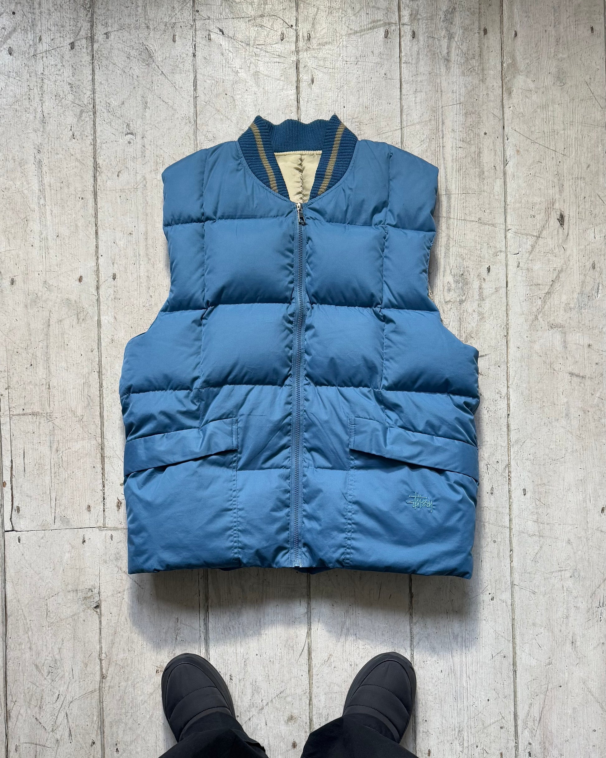 Stussy Vintage Late 90s Outdoor Blue Square Quilted Puffer Vest / Gilet (~L~)