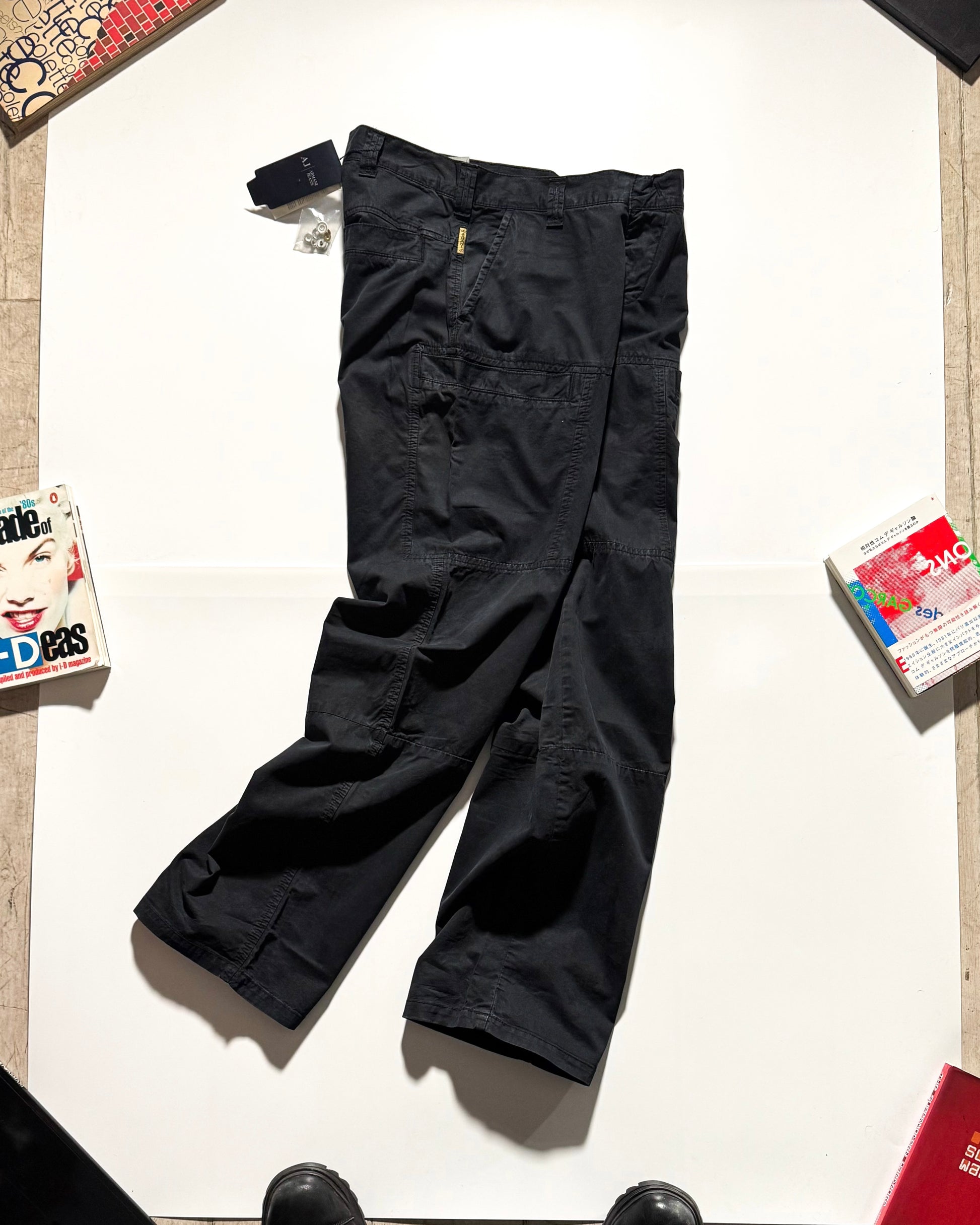 Armani Jeans Vintage Early 2000s Washed Black Deep Grey Cargo Trousers (30~32)