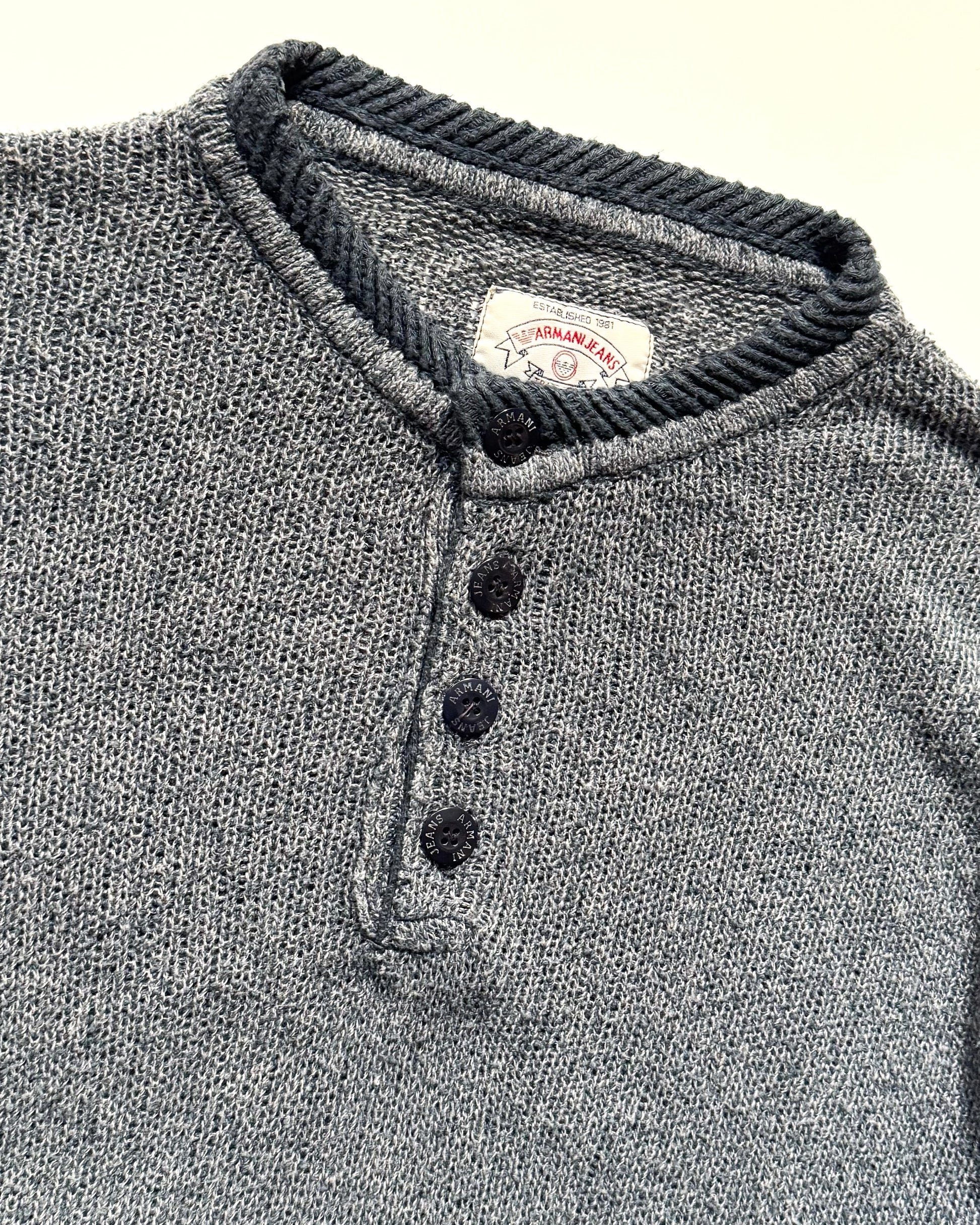 Armani Vintage 90s Washed Blue Henley Loose Gauge Knit Jumper (~XL ~ )