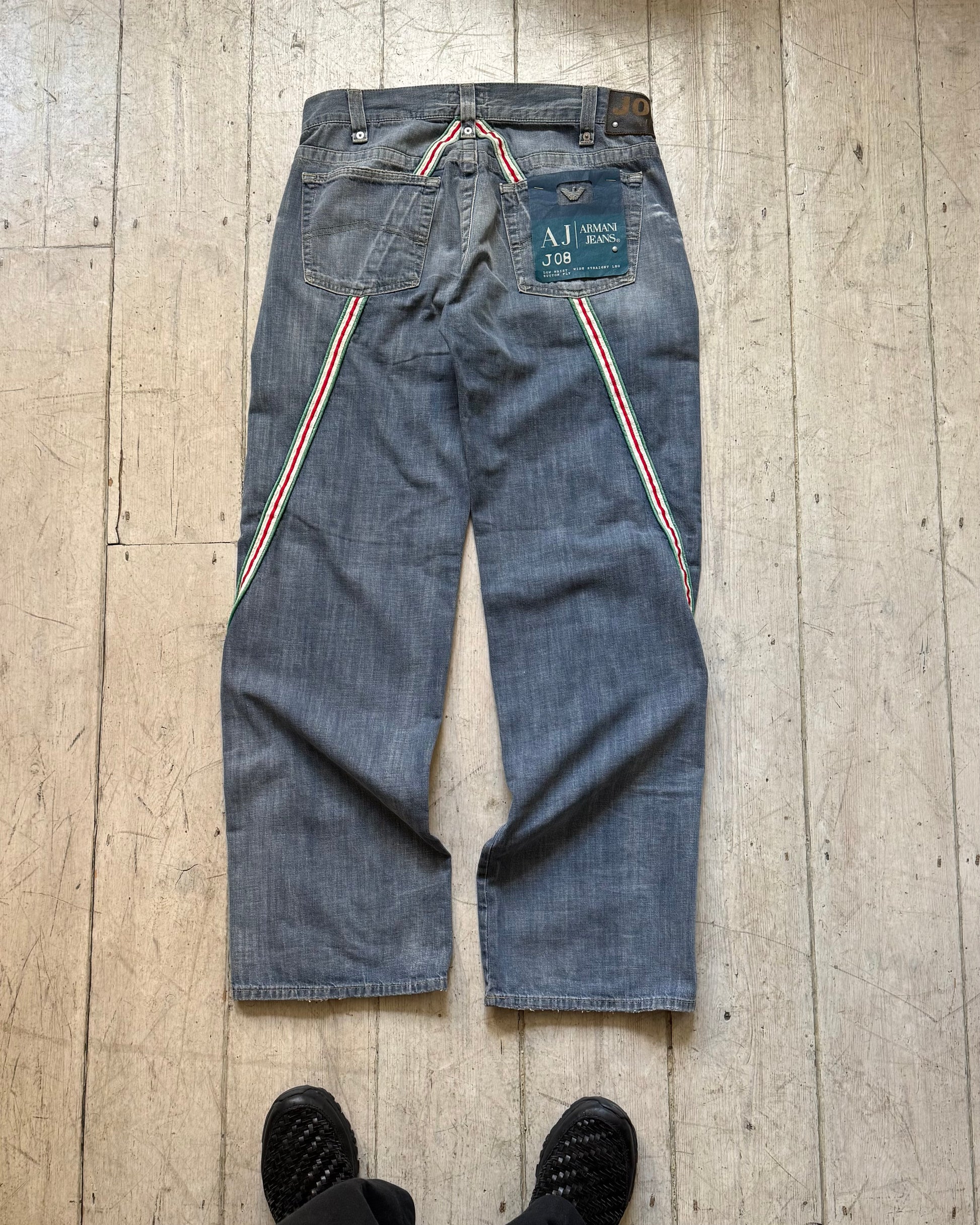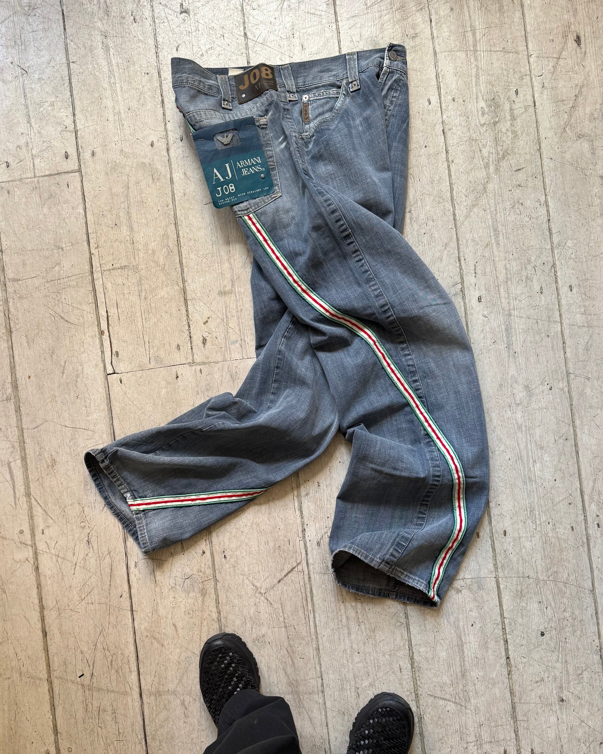 Armani Vintage Early 2000s Red/Green Striped Wrap Around Jeans (30 + 36 + 38 )