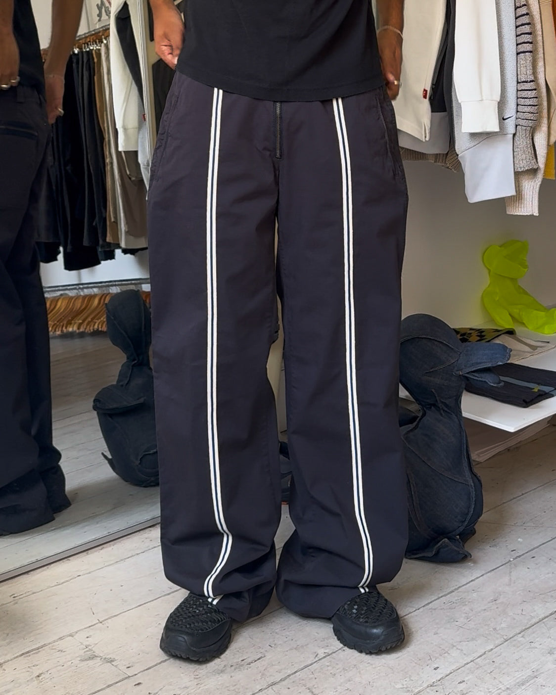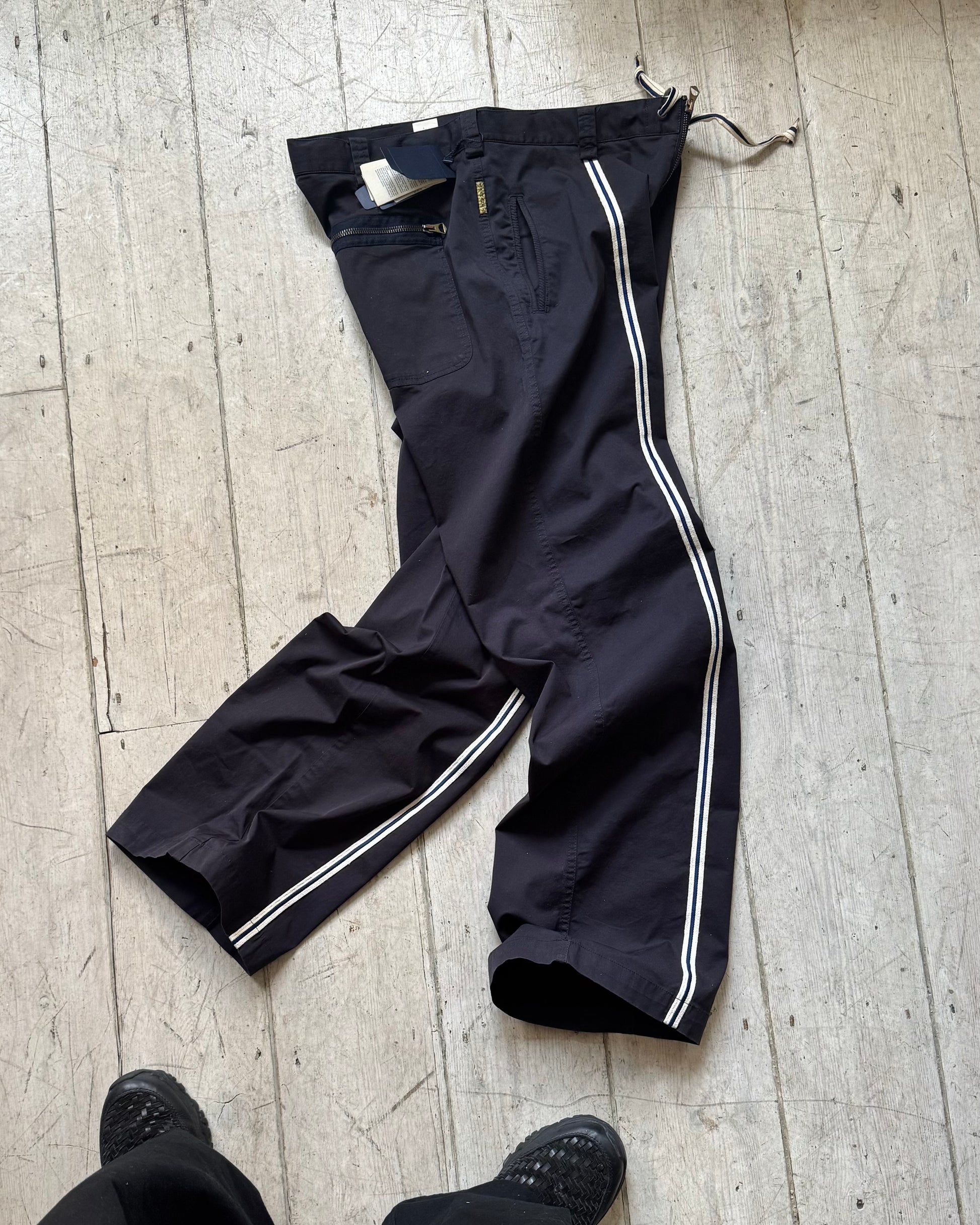 Early 2000s Navy Center Striped Taping Pants (28 + 36 )
