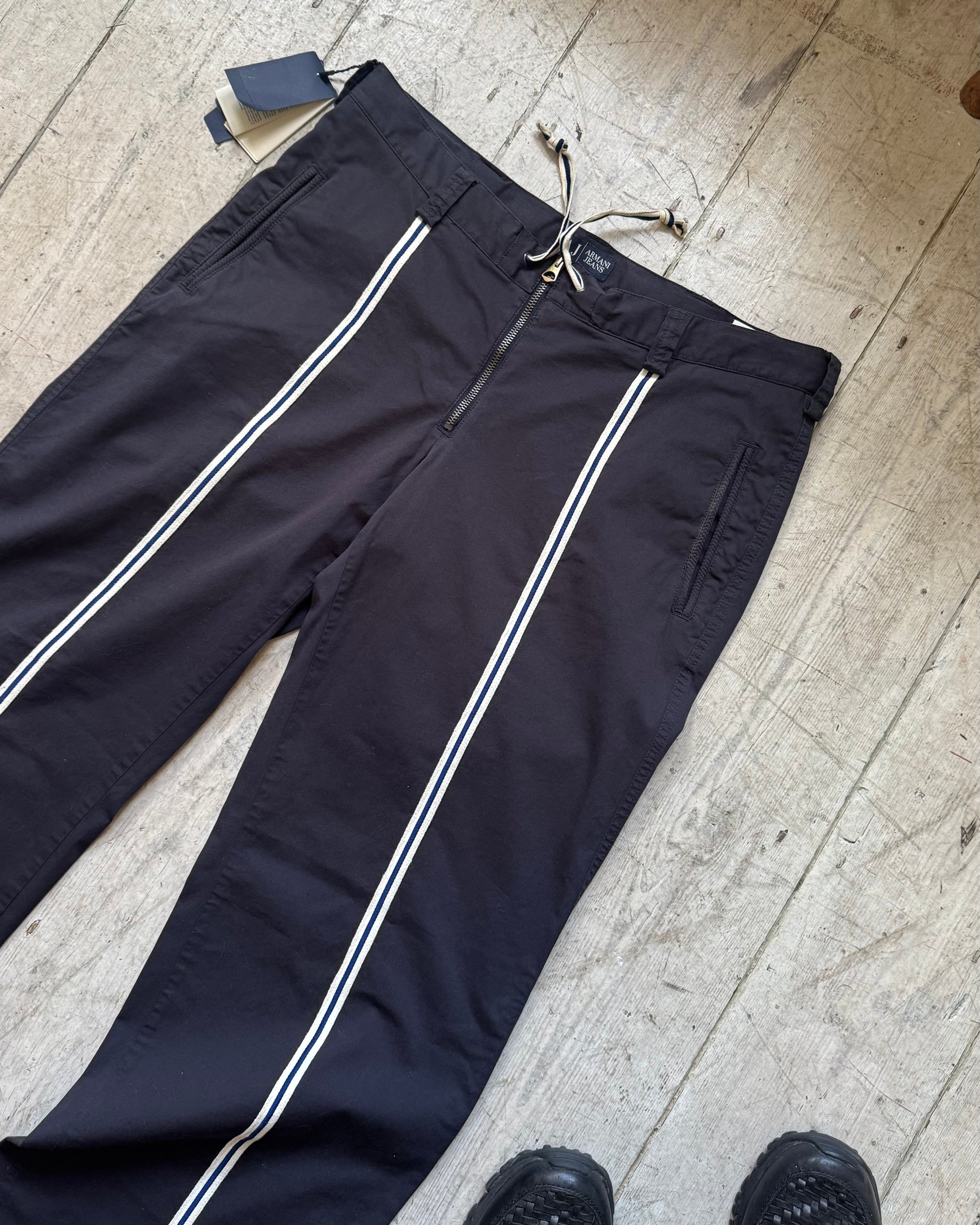 Armani Vintage Early 2000s Navy Center Striped Taping Pants (28 + 36 )