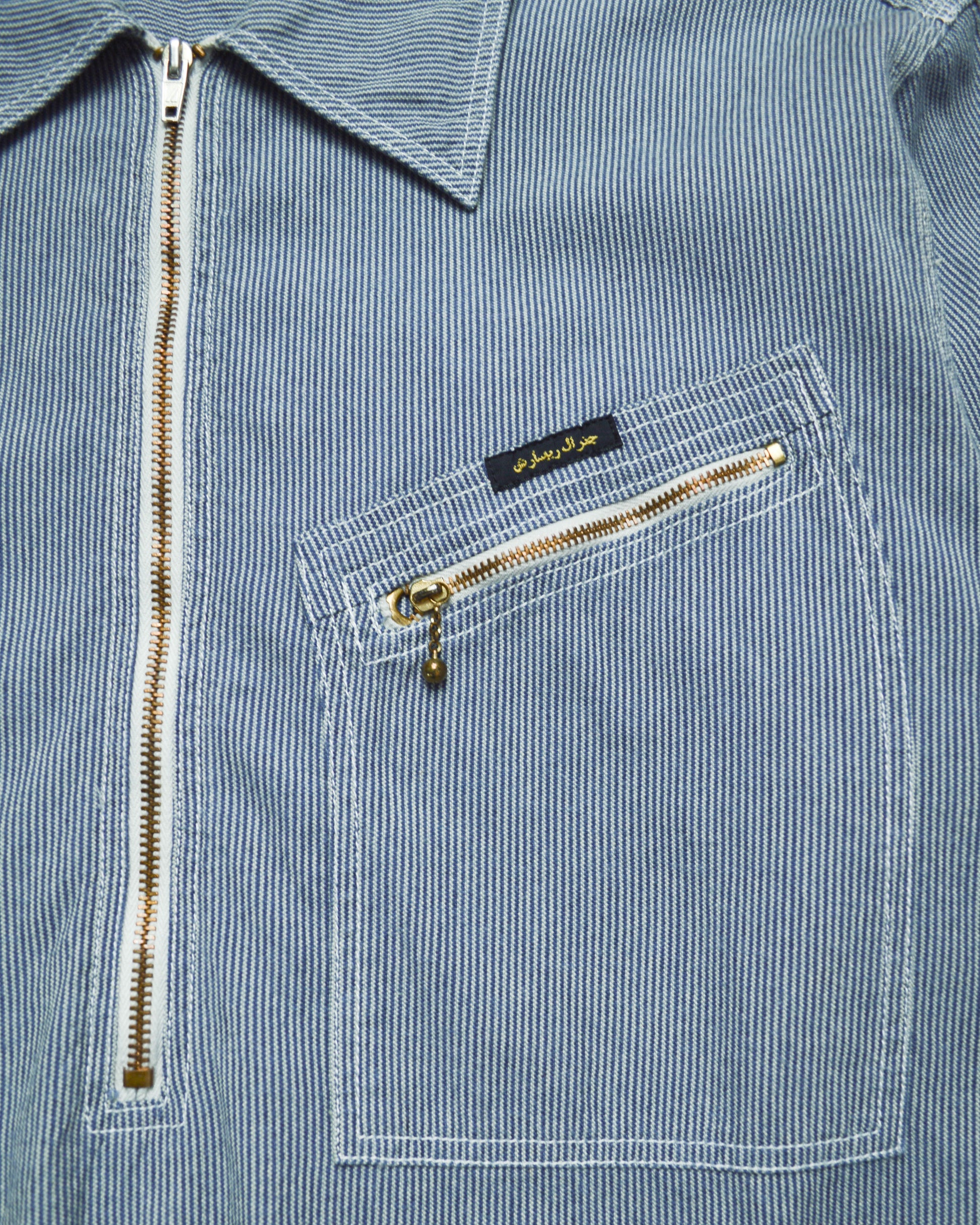 General Research 2004 "Lumber" Arabic Patch Half Zip Striped Shirt (M~L)