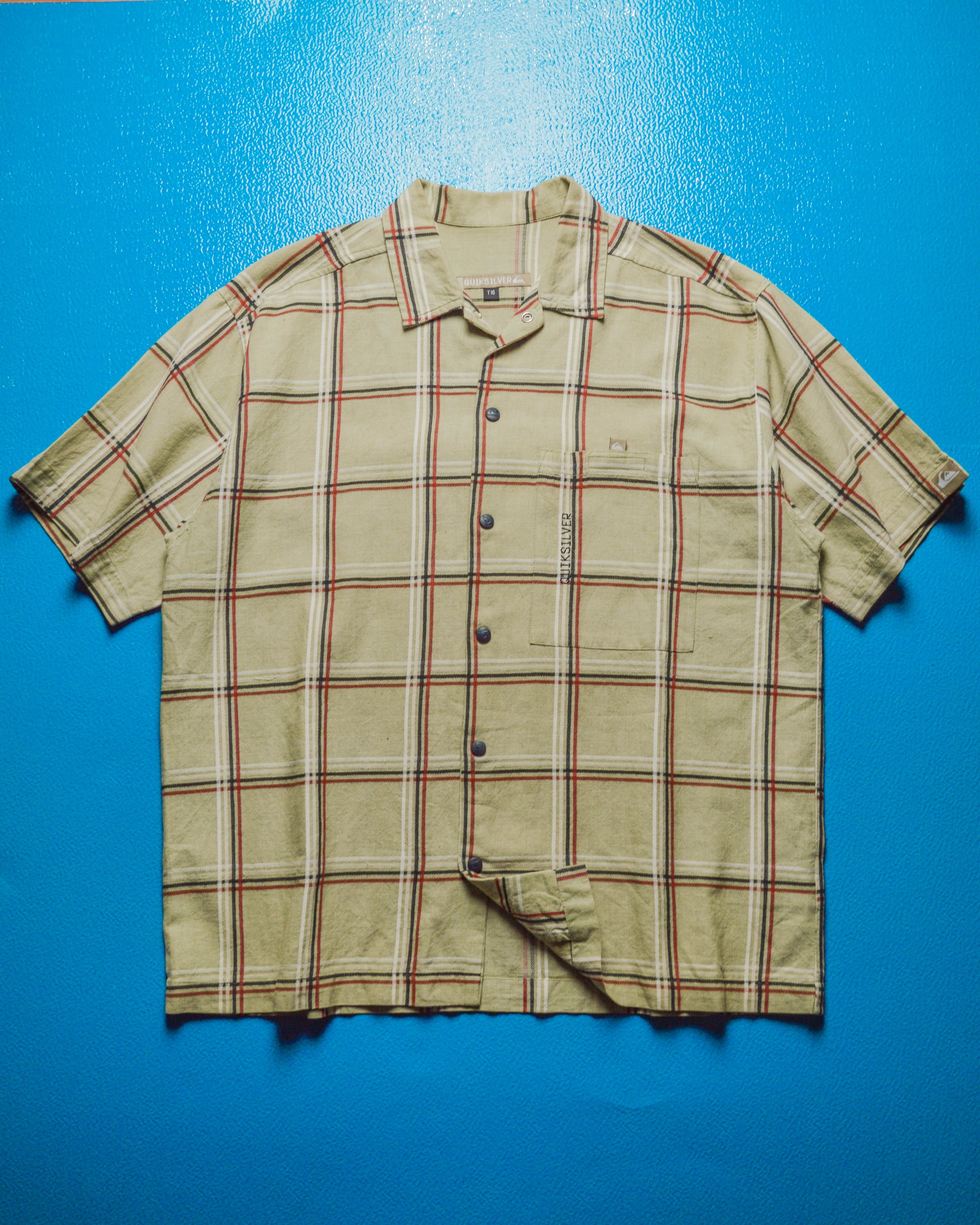 Quiksilver Textured Cotton Beige Red Plaid Shirt (~L~)