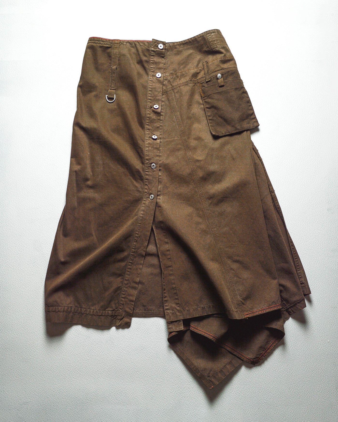 Reconstructed Asymmetrical Brown Cargo Skirt (44)