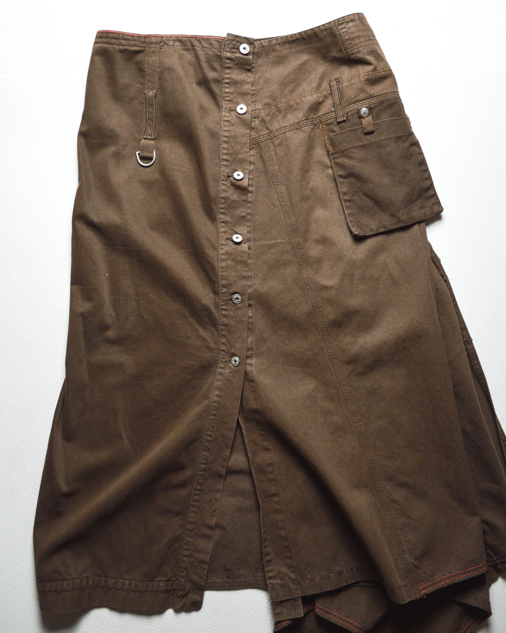 Marithe Francois Girbaud / M+FG Vintage Asymmetrical Reconstructed Brown Cargo Skirt (44)