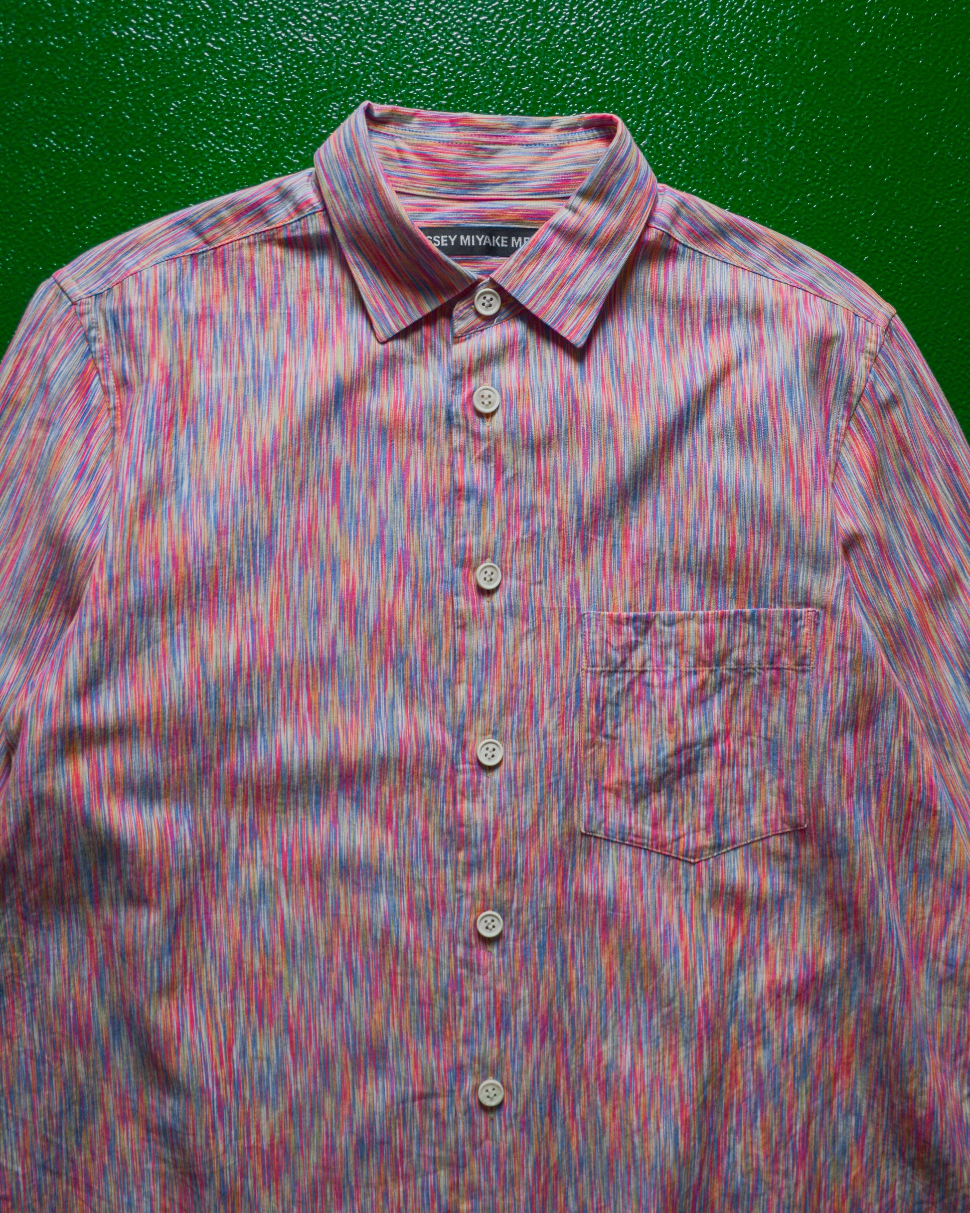 Issey Miyake Brushed / Blurred Lines Vibrant Pattern Longsleeve Shirt (S~M)