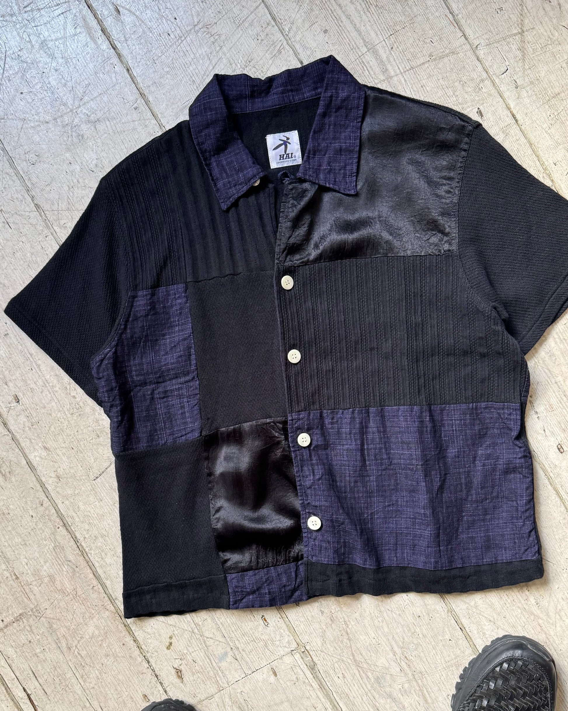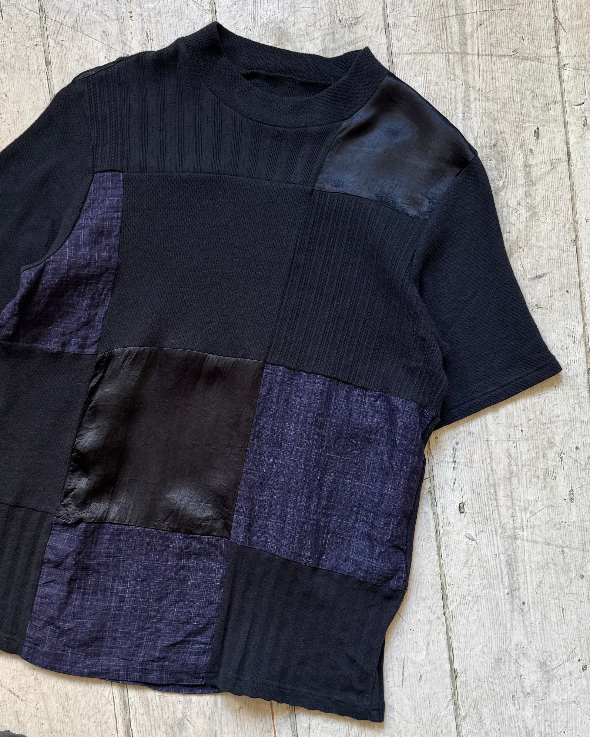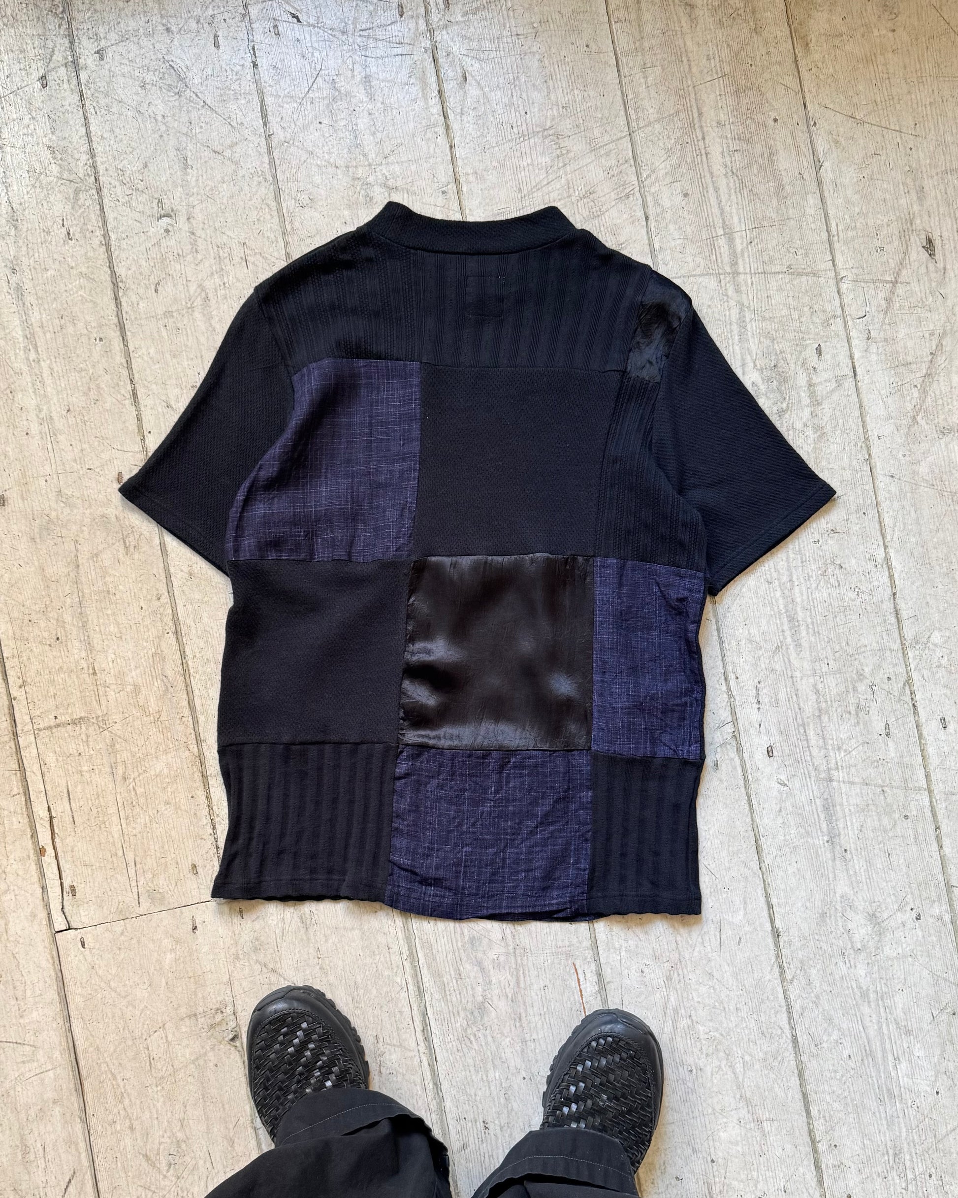 Hai Sporting Gear Vintage Patchwork Black Blue Shirt and Tshirt Set (~S~)