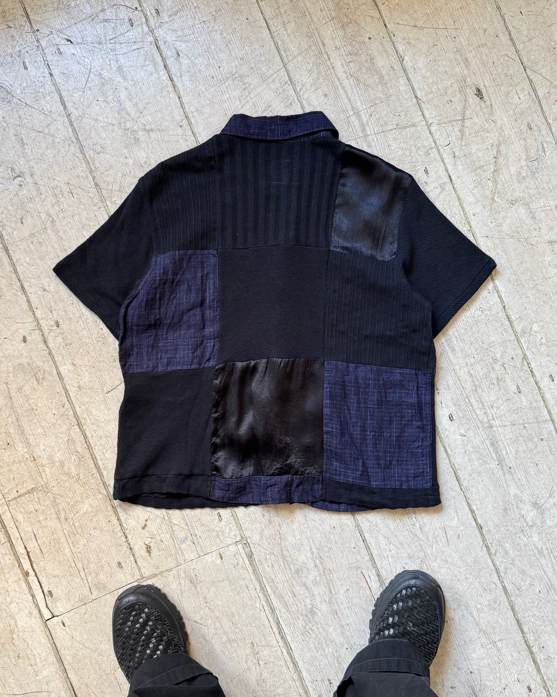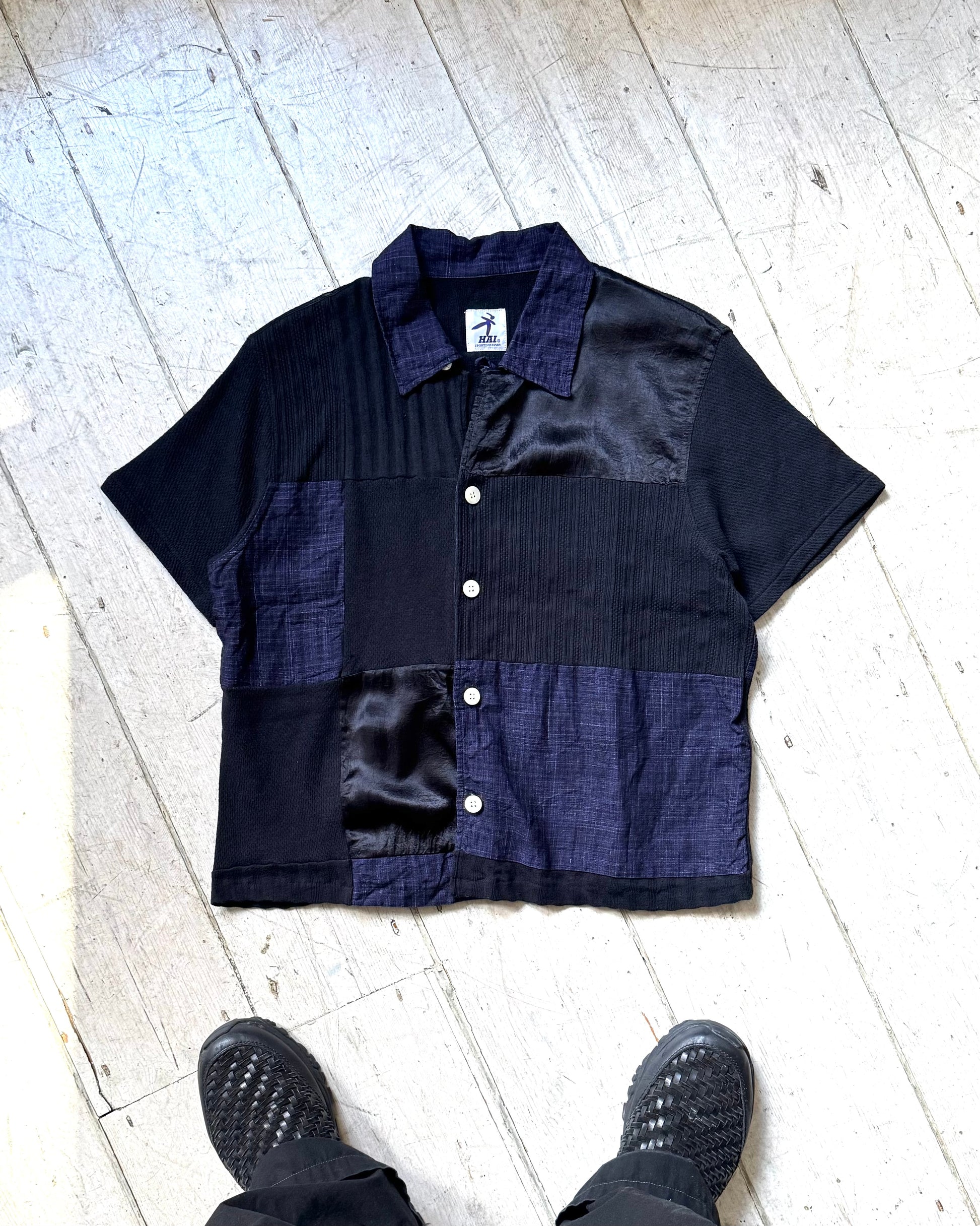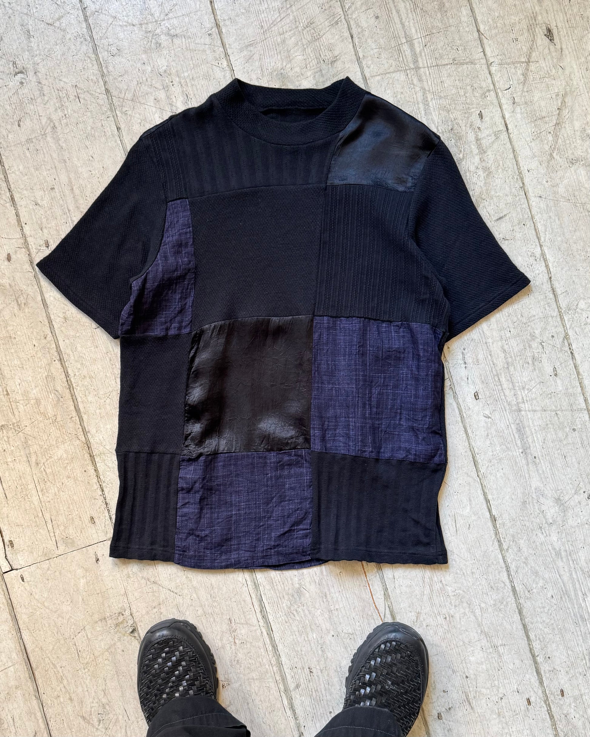 Hai Sporting Gear Vintage Patchwork Black Blue Shirt and Tshirt Set (~S~)