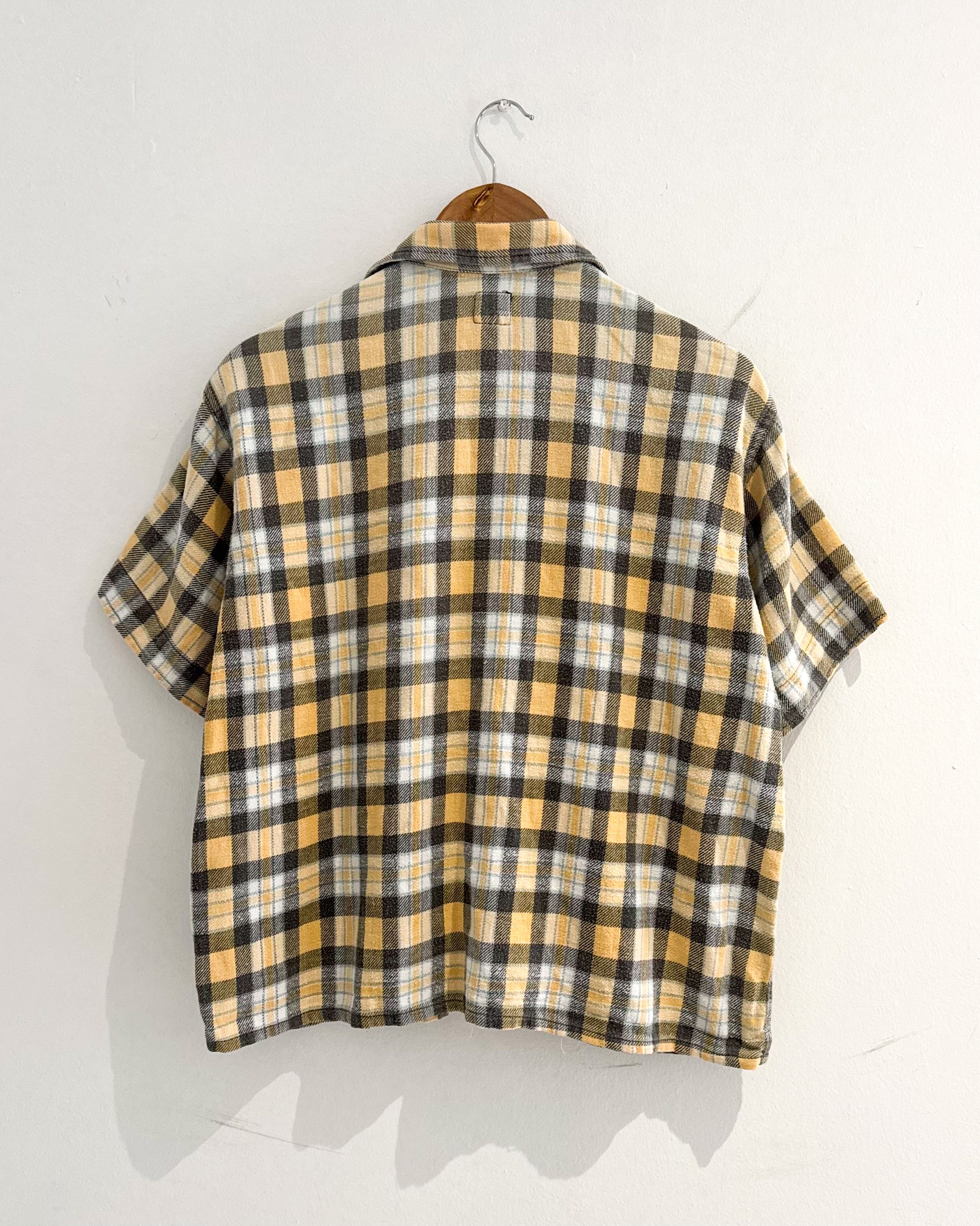 Pale Yellow / Grey Woven Plaid Short Cotton Shirt (M~L)