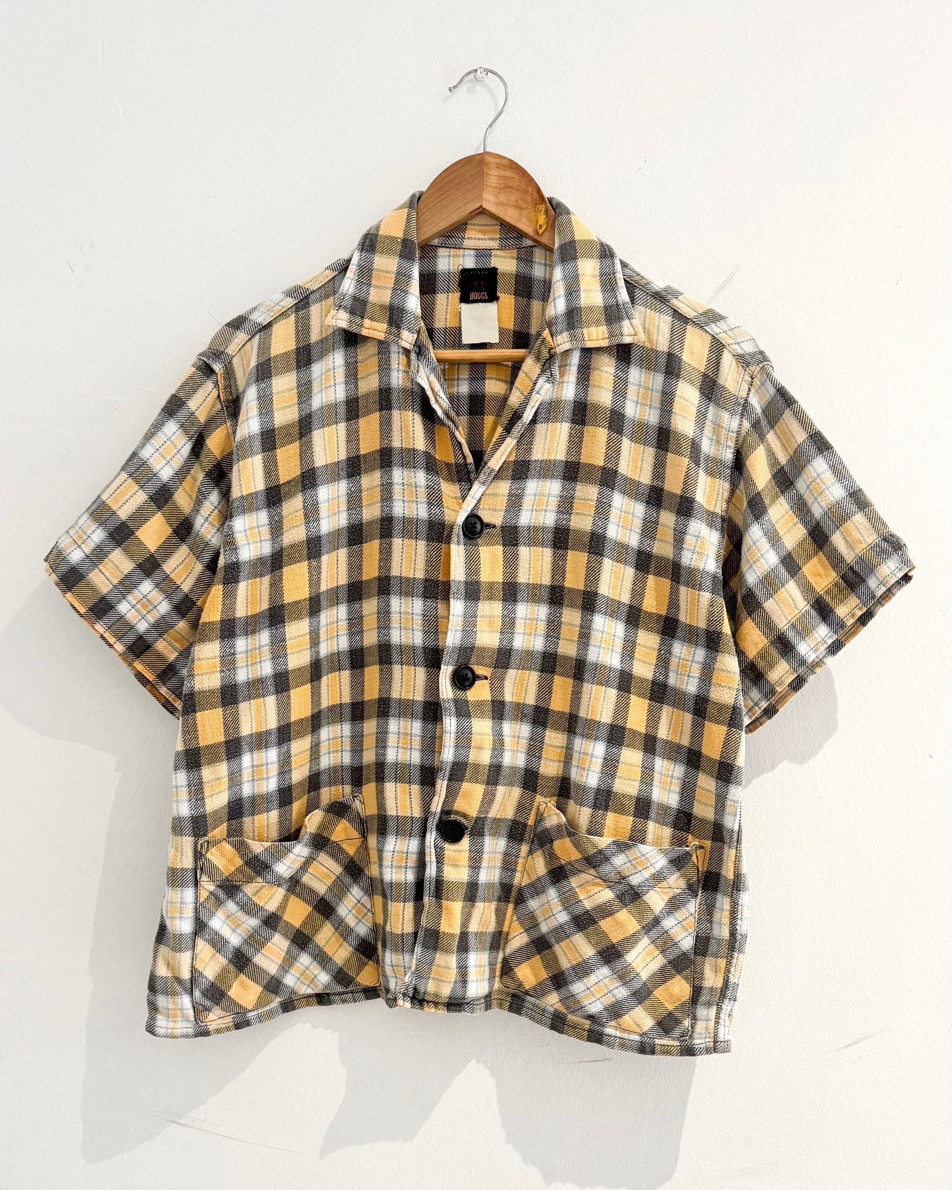 Hoggs by Nepenthes 90s Pale Yellow / Grey Woven Plaid Short Cotton Shirt (M~L)