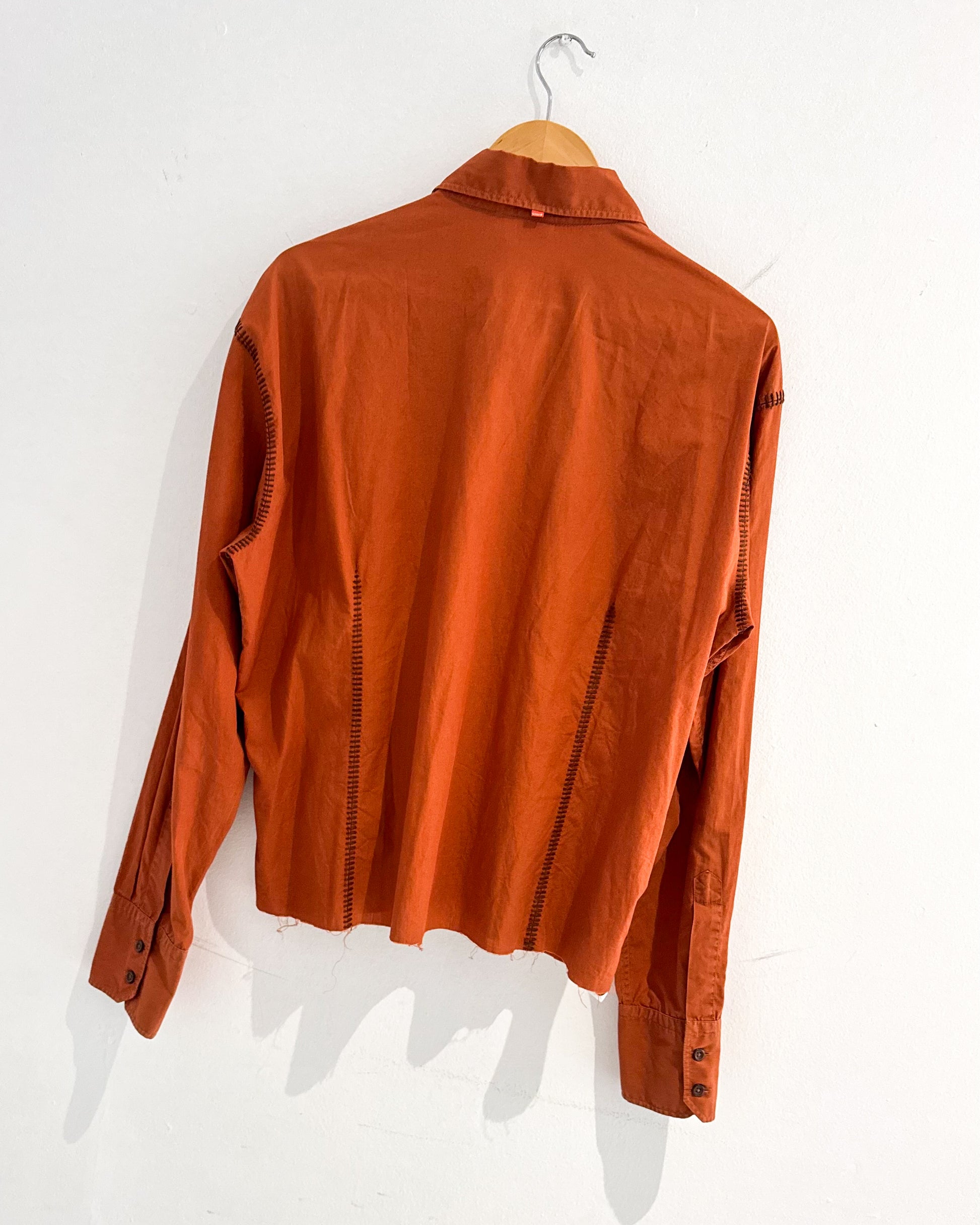 Early 2000s Orange Scar Stitch Cropped Shirt (M~L)
