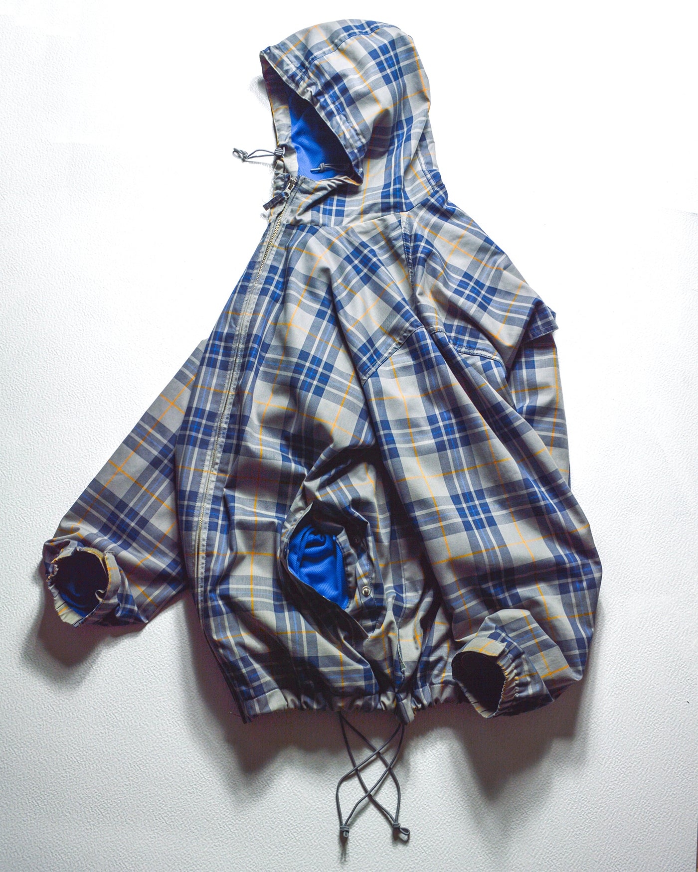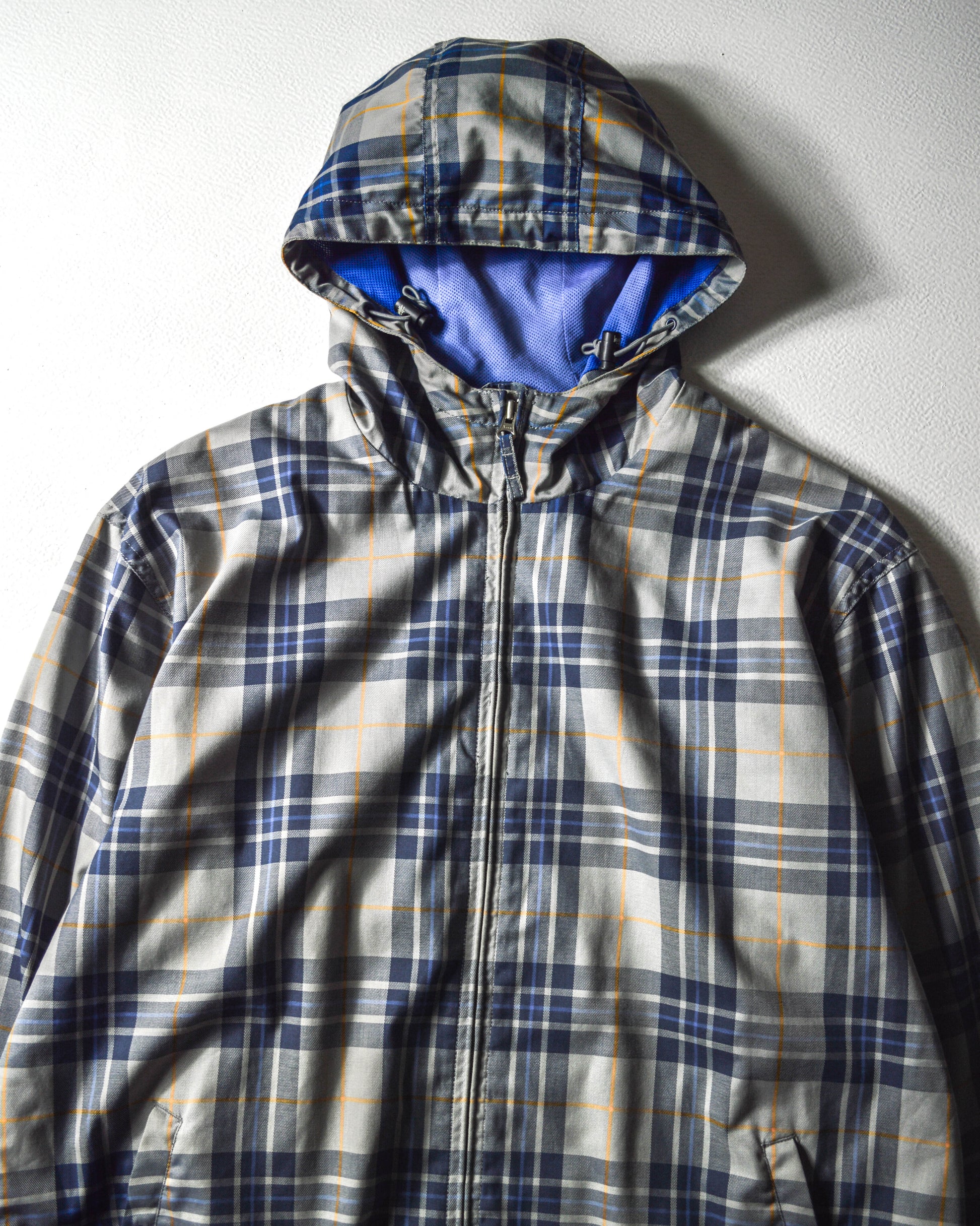 Early 2000s Plaid Mesh Lined Grey Blue Orange Windbreaker Jacket (L)