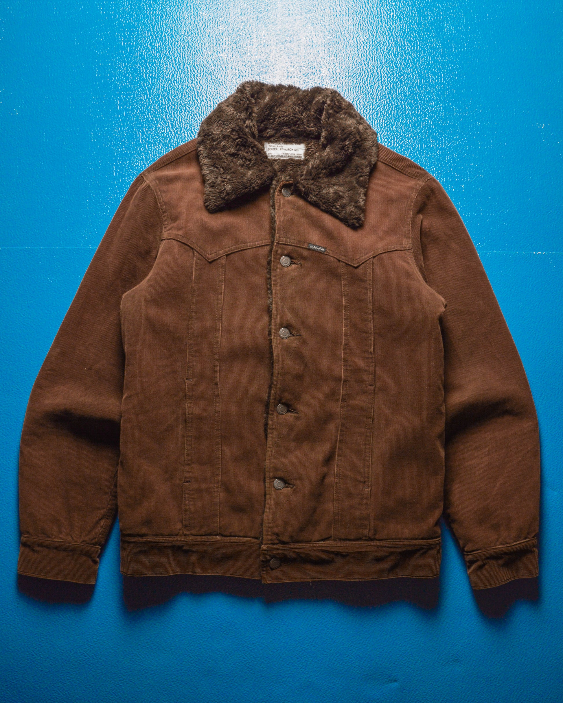General Research 2003 Fine Cord "Storm Rider" Arabic Patch Brown Fleece Lined Trucker Jacket (~M~)